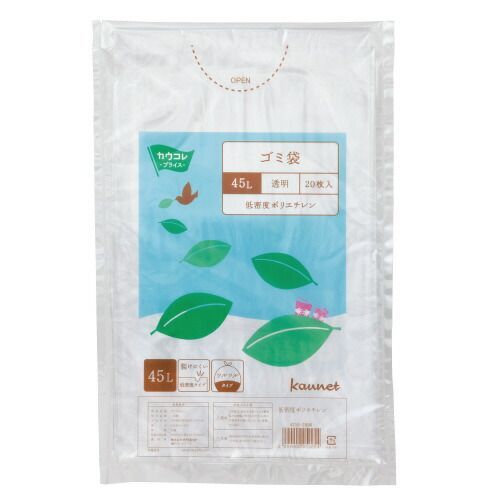 パ)低密度薄口ゴミ袋 少量パック 45L 透明 20枚×54216-4012【カウネット】