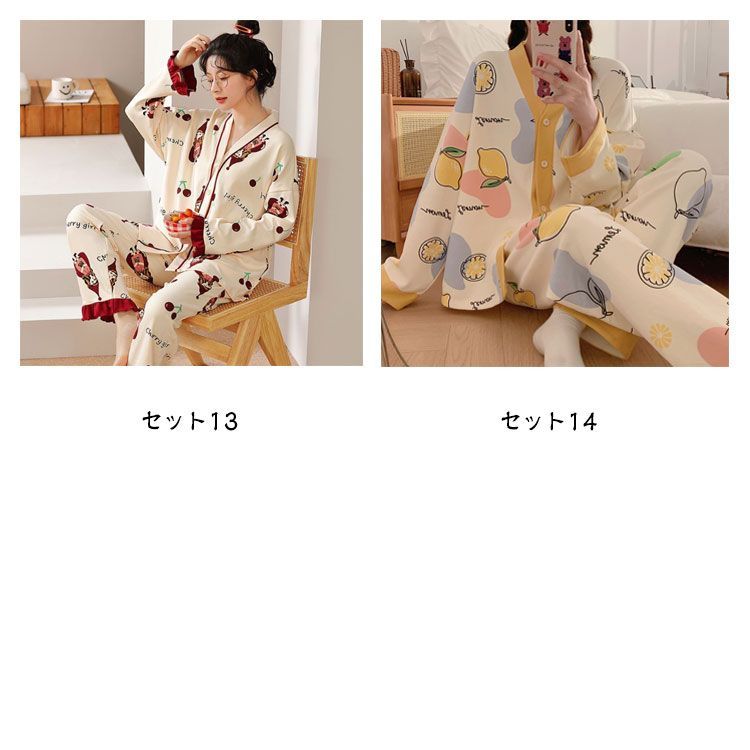 上下ともかわいい総柄がプリントされておうちでのリラックスタイムも楽しい気分で過ごせそう♪