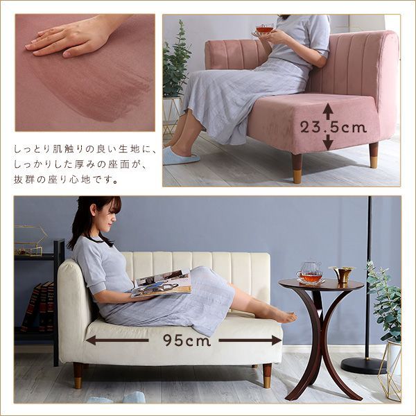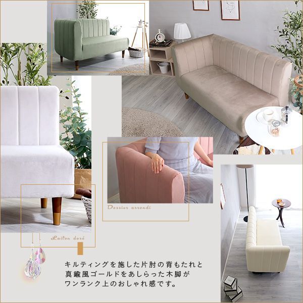 くすみカラーを使用し、ベロア調で高級感のあるコンパクトソファ!