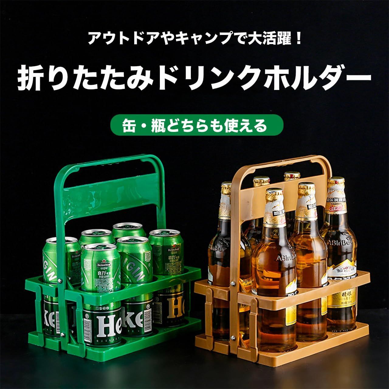 [Queen-b] ドリンクホルダー 折りたたみ 持ち運び 6本収納 ドリンク キャリア ケース アウトドア キャンプ BBQ 缶 瓶 ビン ボトル ペットボトル 飲み物 ホルダー ラック