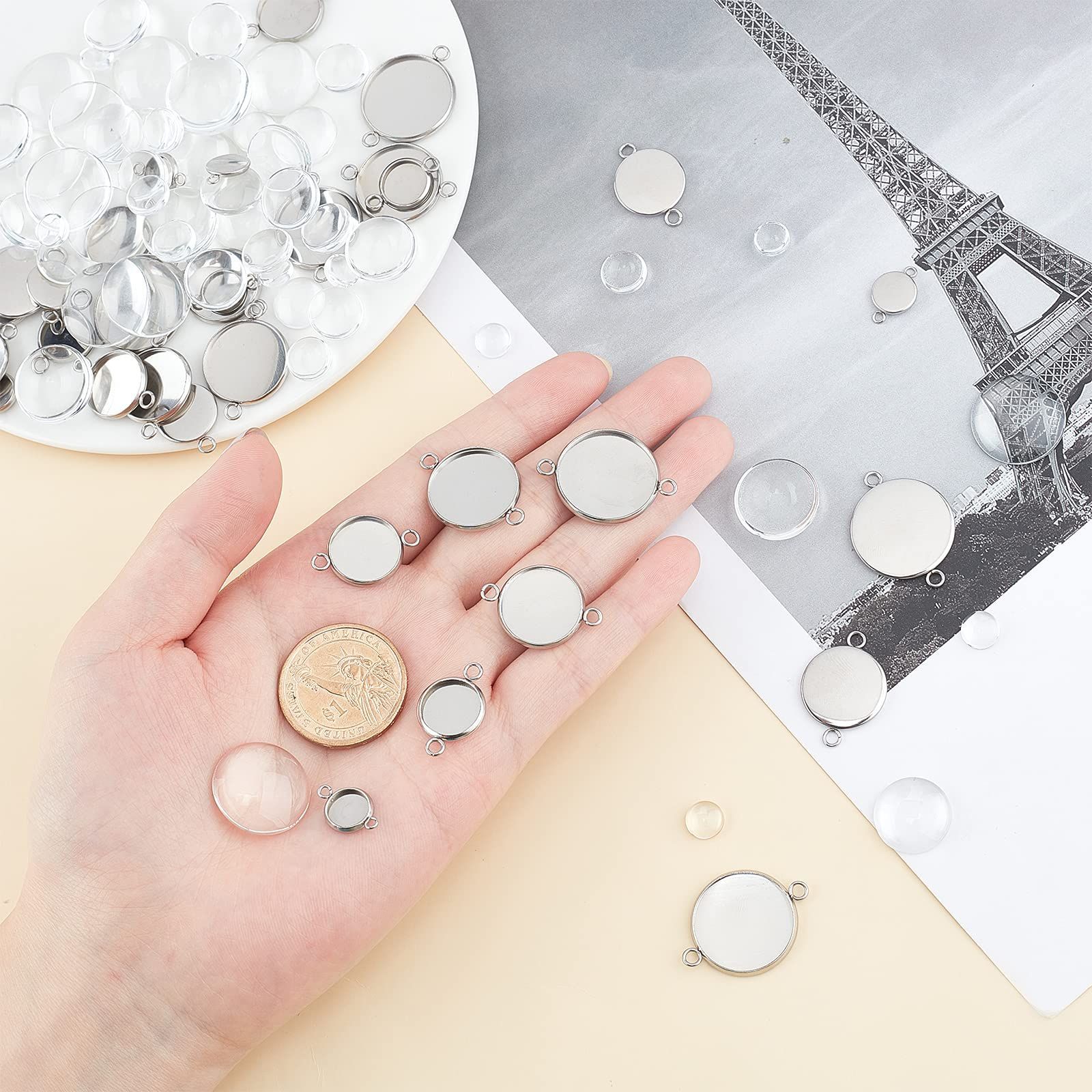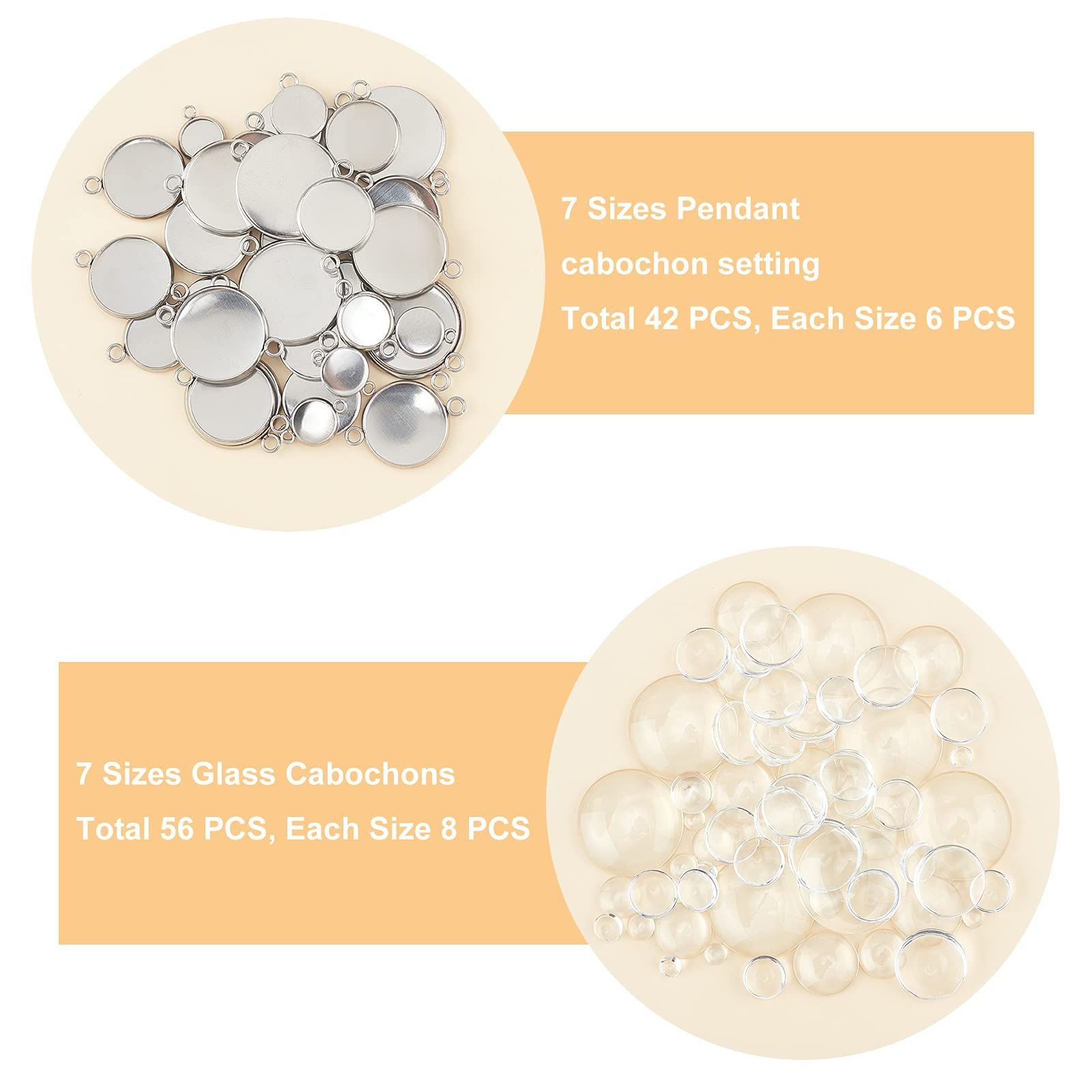 UNICRAFTALE 42個 7種サイズ ペンダントカボションセッティング トイレ ペンダントガラスカボション ステンレスペンダントセッティング ハーフラウンドカボションセッティング 丸皿ベース ミール皿 ステンレス カメオ台 台座 メタルチャーム ステンレスチャーム ブレスレット作り ネックレス用 アクセサリーパーツ 手芸 DIY用品