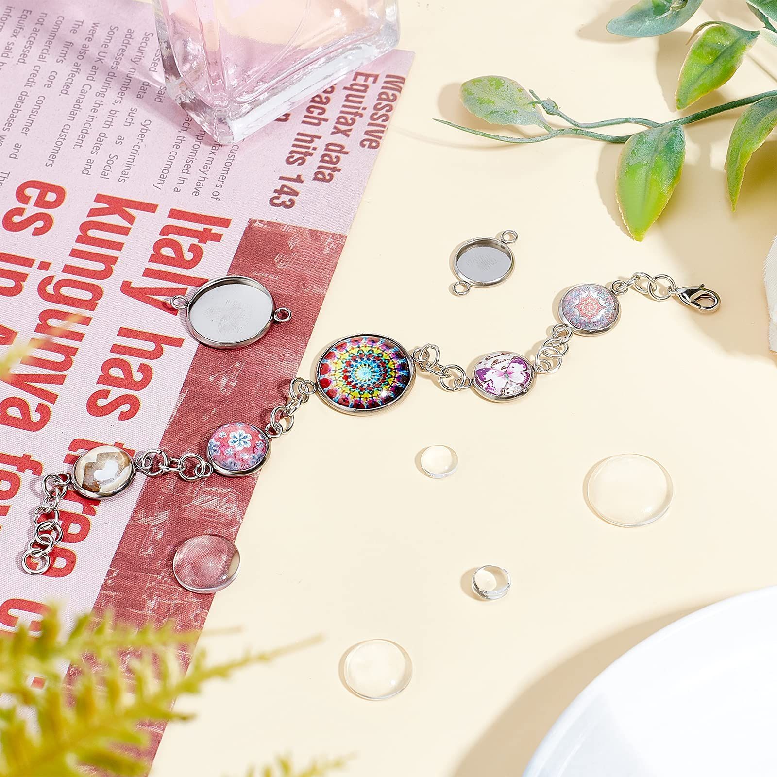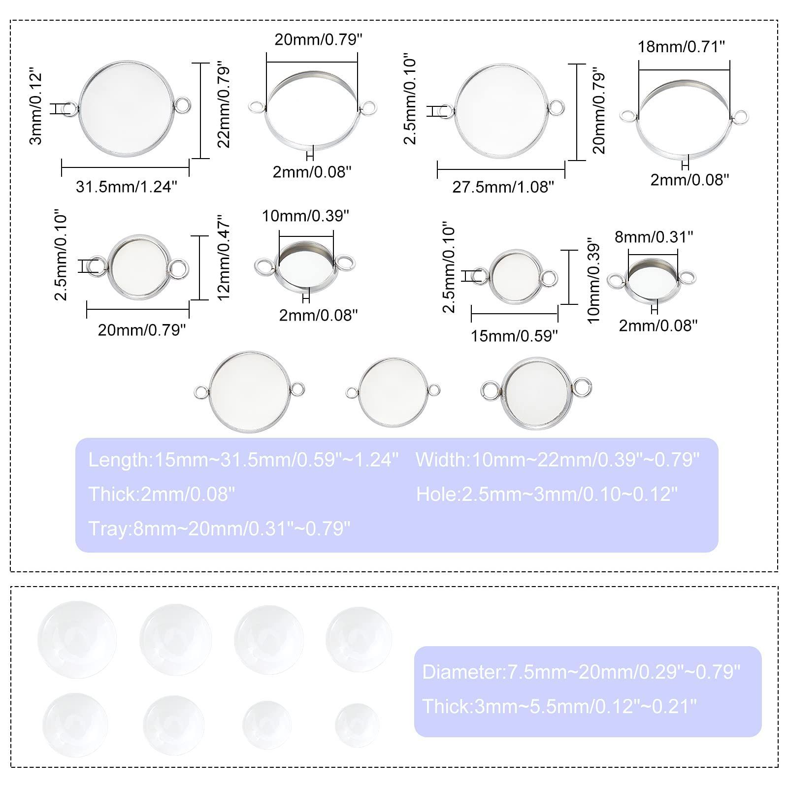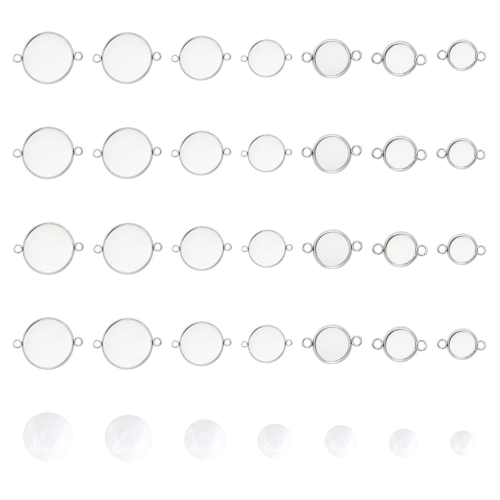7サイズリンクチャーム:ステンレススチールカラーのカボションブランク 約8/10/12/14/16/18/20mmサイズの丸いブランクリンクとガラスカボションが含まれています 全部で約42セット さまざまなプロジェクトとのマッチングが簡単.