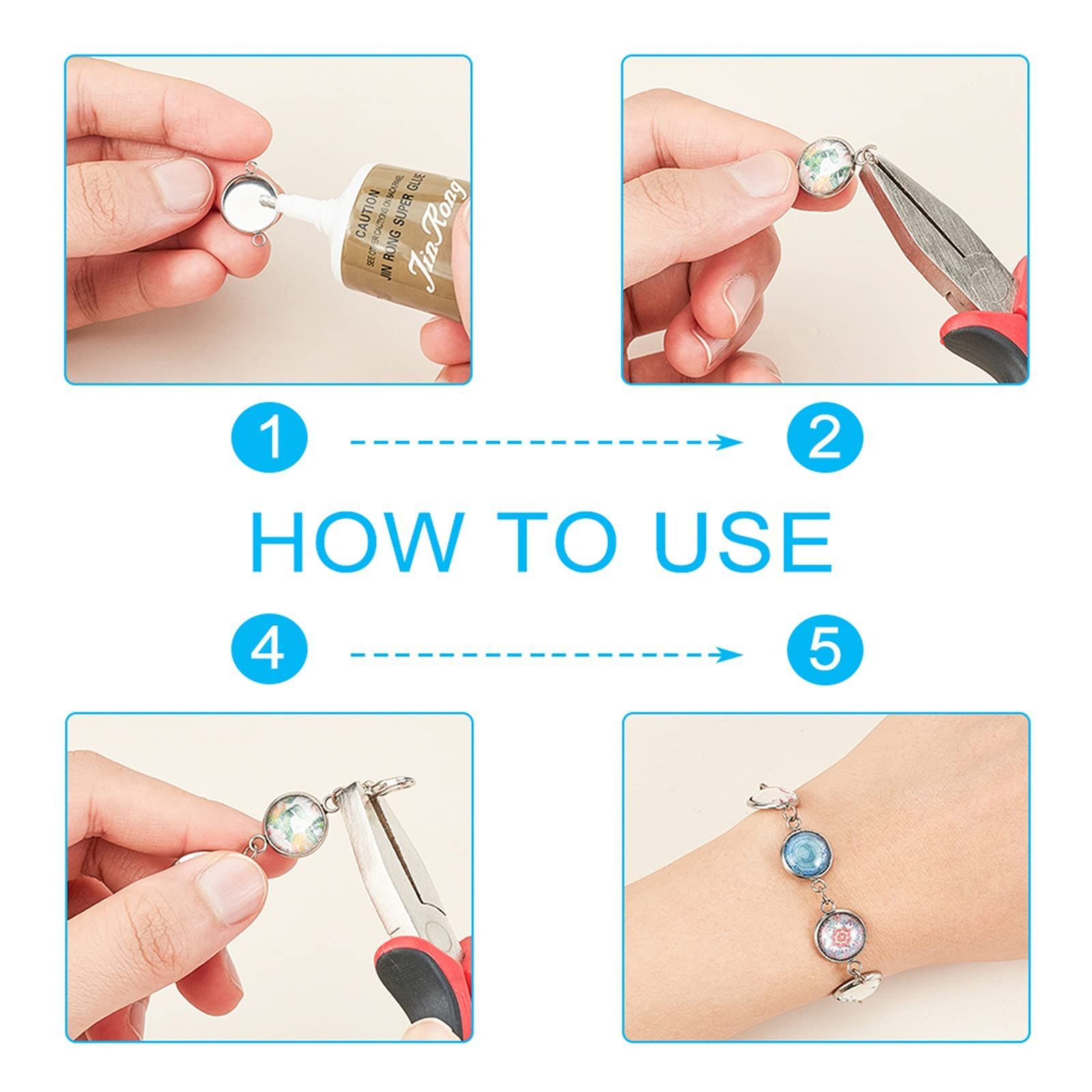 DIYリンクペンダント-イヤスタッドアクセサリーに適したガラスカボションを使用してください トレイにのせてよく貼り付けます 次に、好きなスティックの型紙を選択します ガラスカボションの表面に追加します. その後、それはよく行われます.
