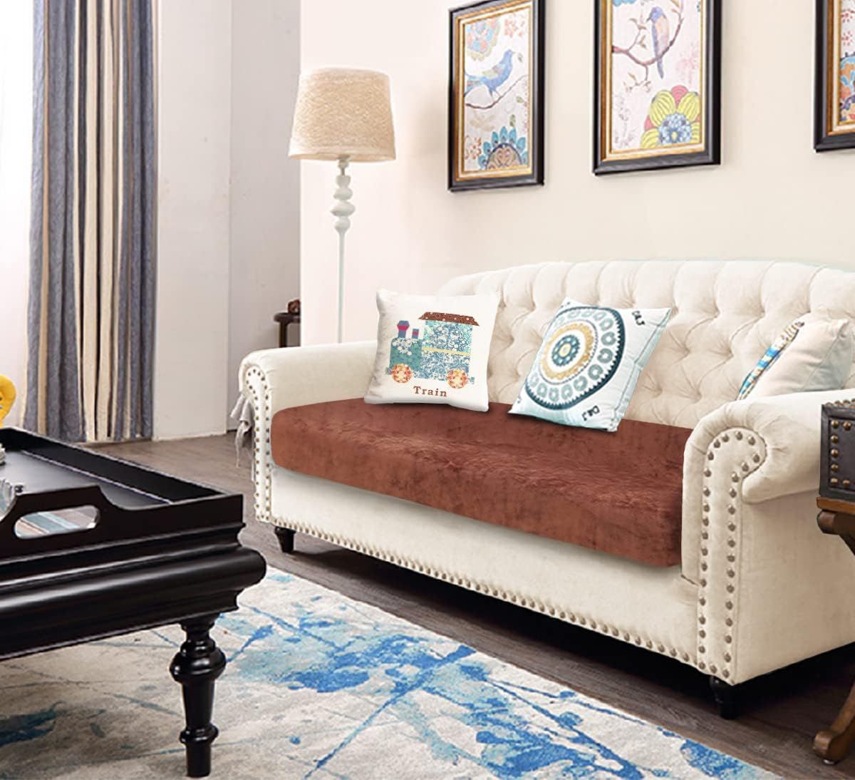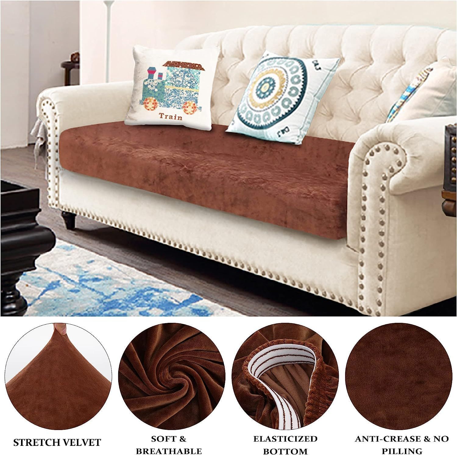 TIANSHU ソファー座面カバー 2人掛け ソファー クッション カバー フランネル 無地 縦横弾力 ストレッチ フィットタイプ 滑り止め 柔らかい 伸縮素材伸び良く 四季適用 超便利(2人掛け,コーヒー)