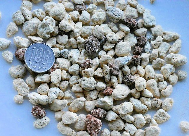 蘭の植え方は、それぞれ違いますが、鉢底から大粒20%中粒60%小粒20%位が標準なようです。