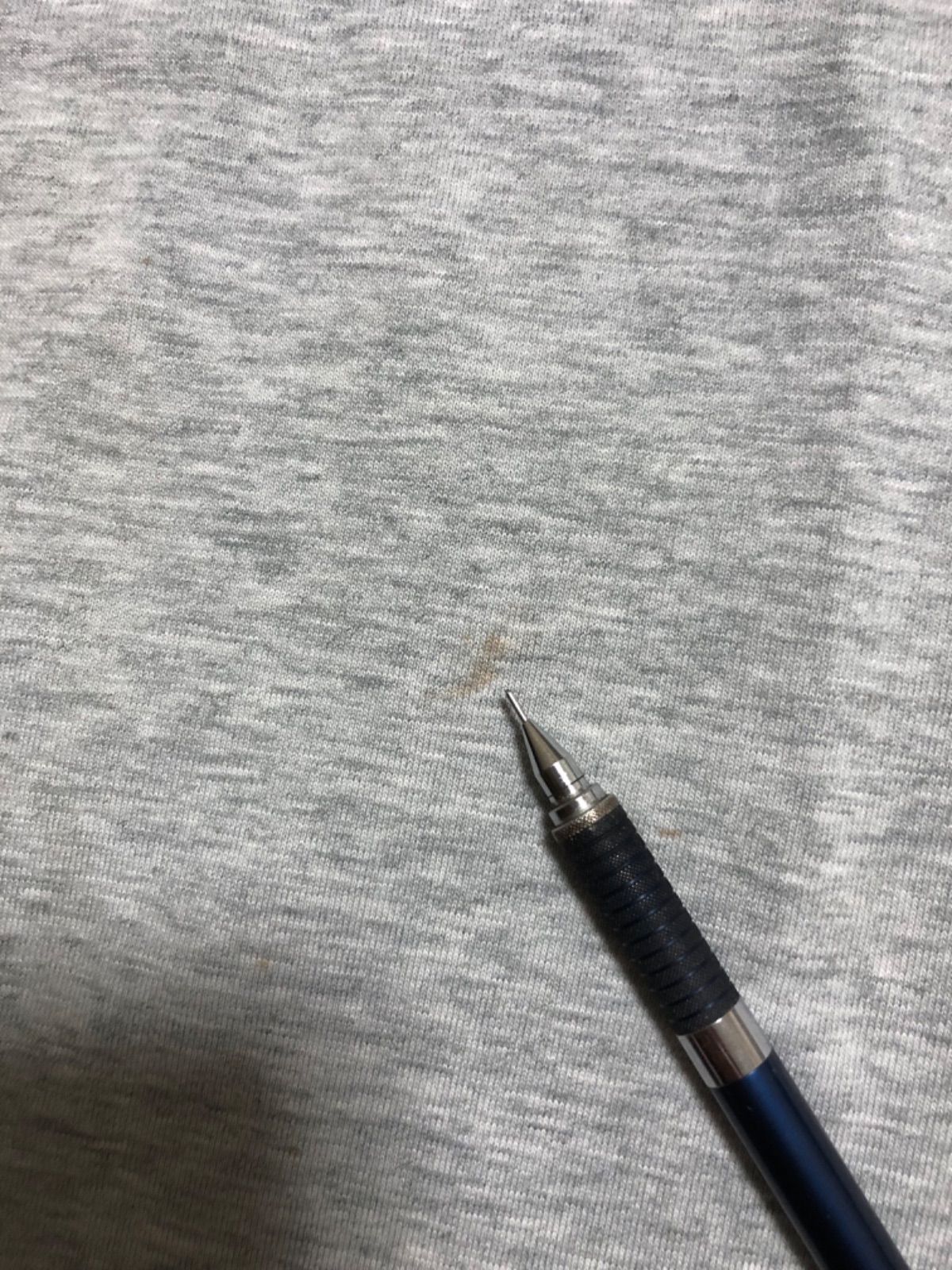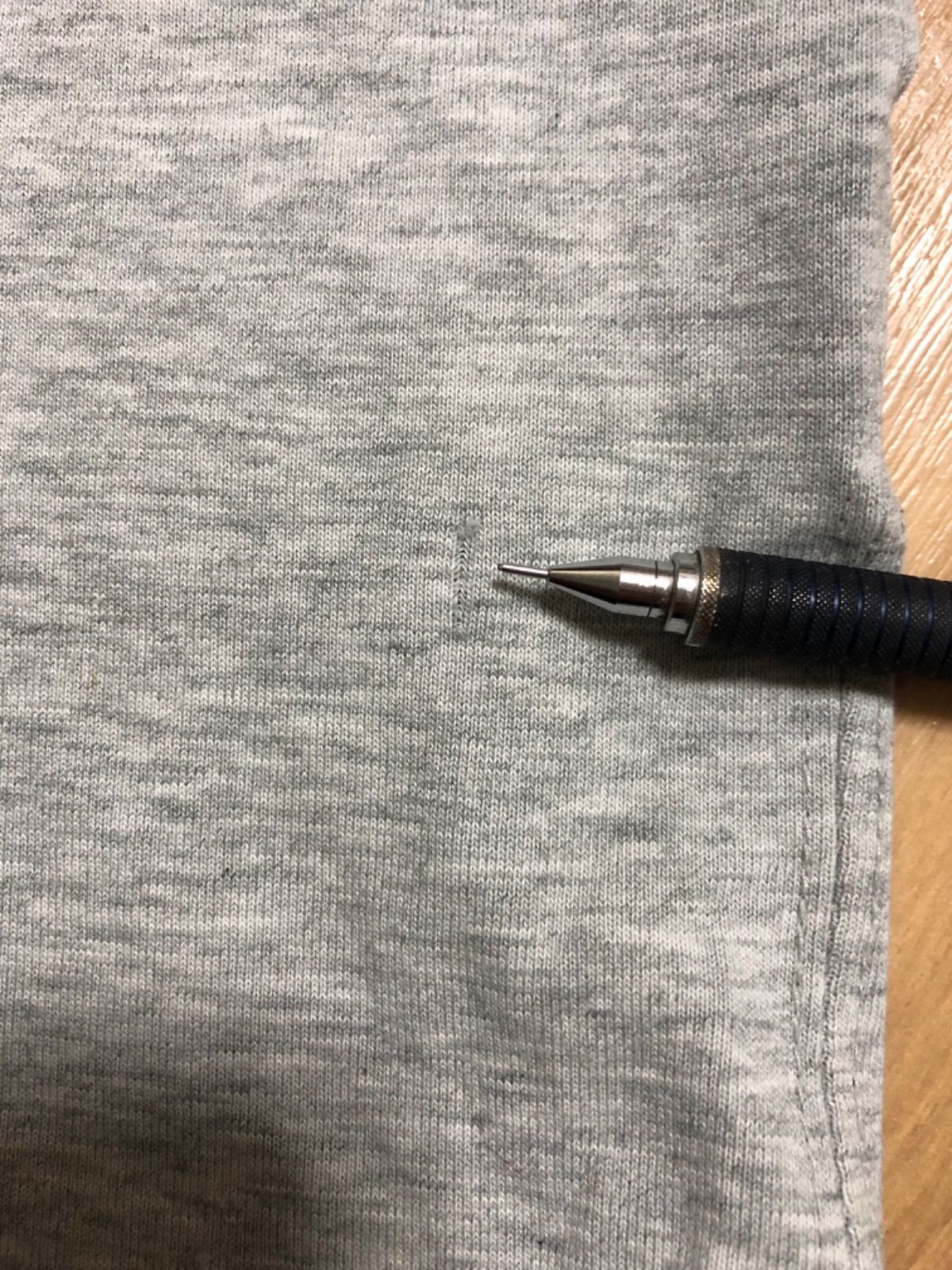 フロント部分に小さなシミとほつれが有ります。首部分に穴が有ります。画像で確認をお願いします。
