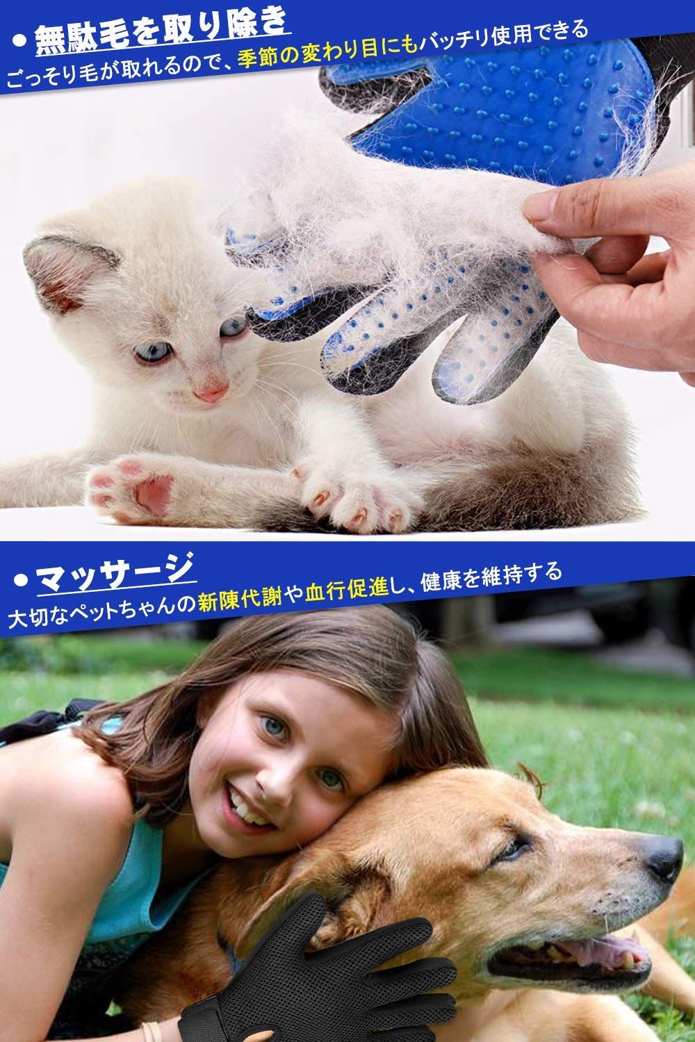 【毛取り・お風呂・マッサージ多用途】 犬のシャンプー時や猫の毛取り、マッサージ用にも使える万能ペットブラシ。うさぎ ブラシとしても使用可。大型犬の毛取りにも対応し、犬用ブラシとして抜け毛除去とマッサージが同時にできる。ペット用品 犬・猫用ブラシとして愛犬・愛猫のお風呂セットに欠かせないアイテム。【パッケージ】左右セットのペットブラシ、書、収納ボックス付き【1年間】。