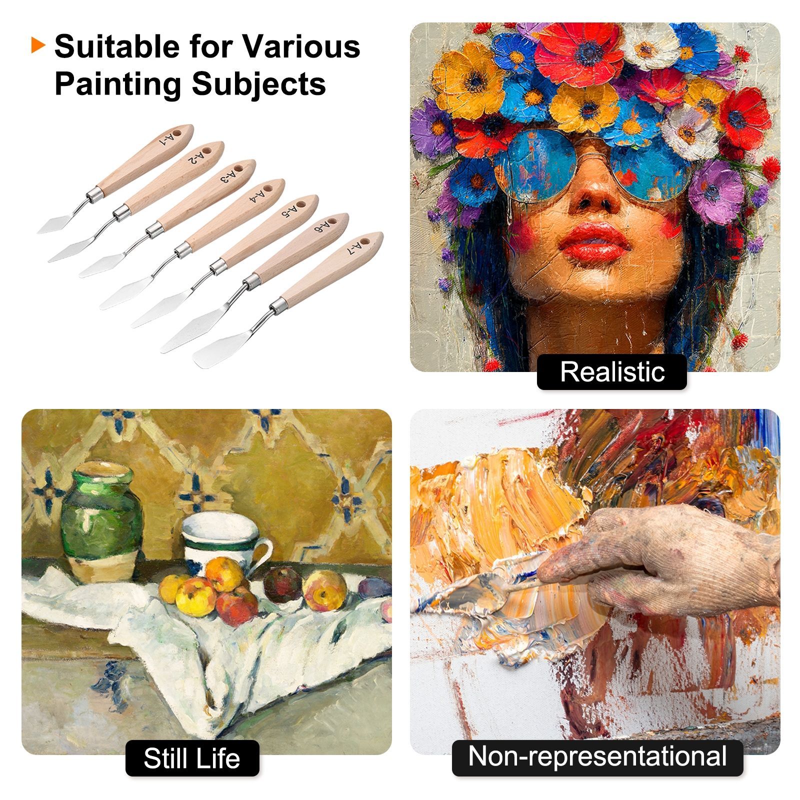 用途 - オイルペイント、アクリルペイント、およびさまざまな他の芸術的用途に適しています。混合、塗り広げ、削り、広いストロークを作成するために適しており、アマチュアからプロのアーティストまでの多目的ツールです。