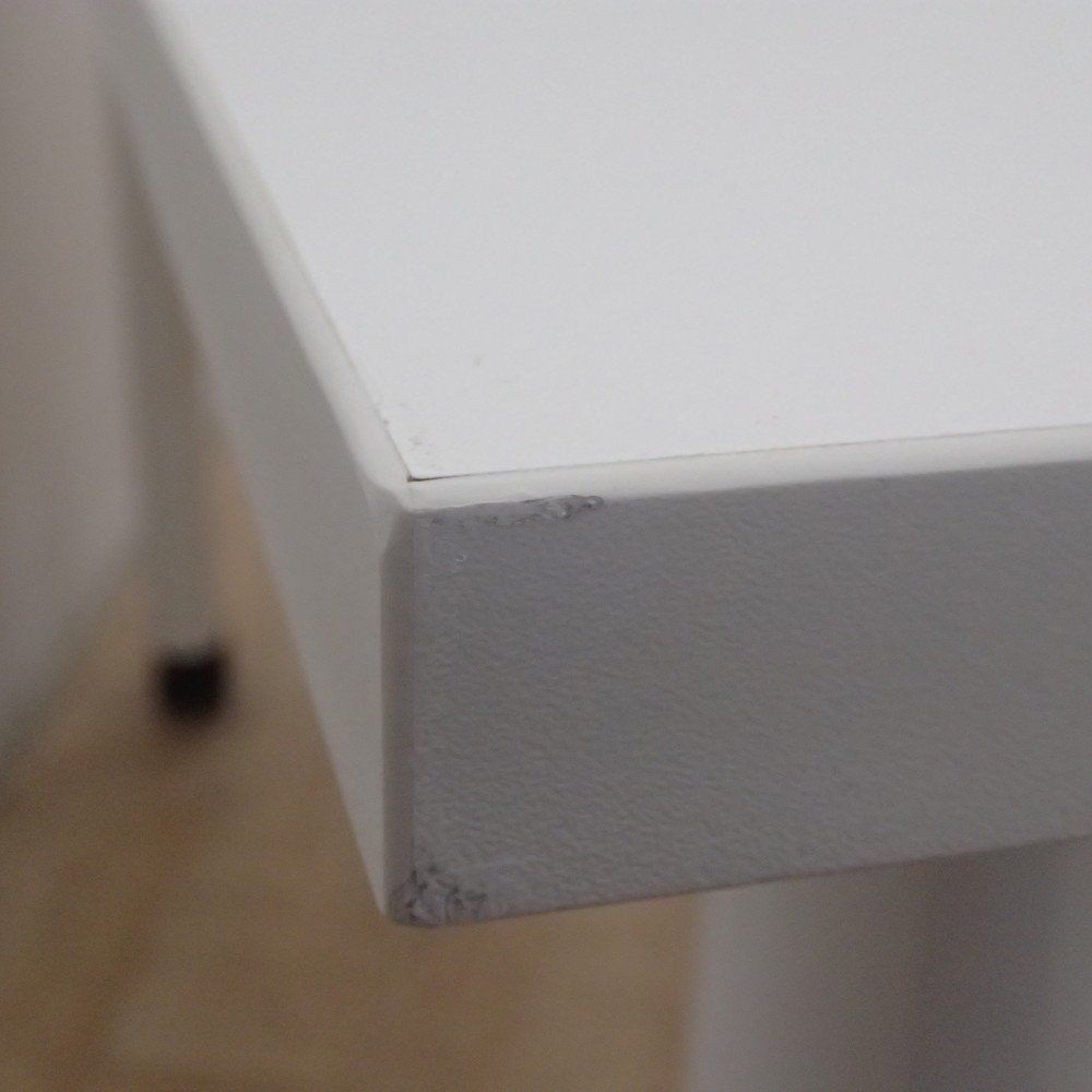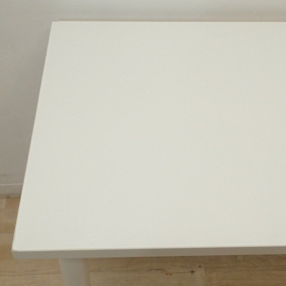 清潔感あふれるホワイト天板は、明るく開放的な空間を演出。シンプルなデザインと機能性を兼ね備えたミーティングテーブルです。