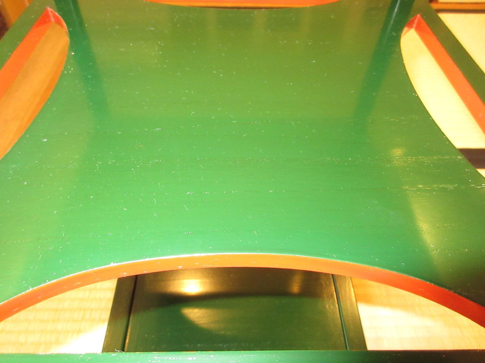 天板に少し漆が取れているところがありますが、目立った凹みや大きい傷などありませんのでご使用に問題はないと思います。