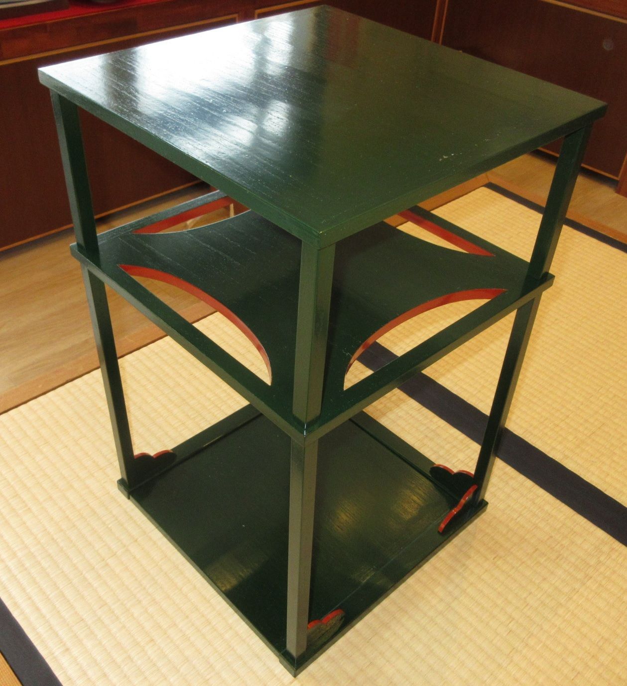 共箱に経年による変色などがありますが、棚物本体に目立った傷や汚れなど無く綺麗な状態で、普段のお稽古や人前に出されても十分綺麗だと思います。