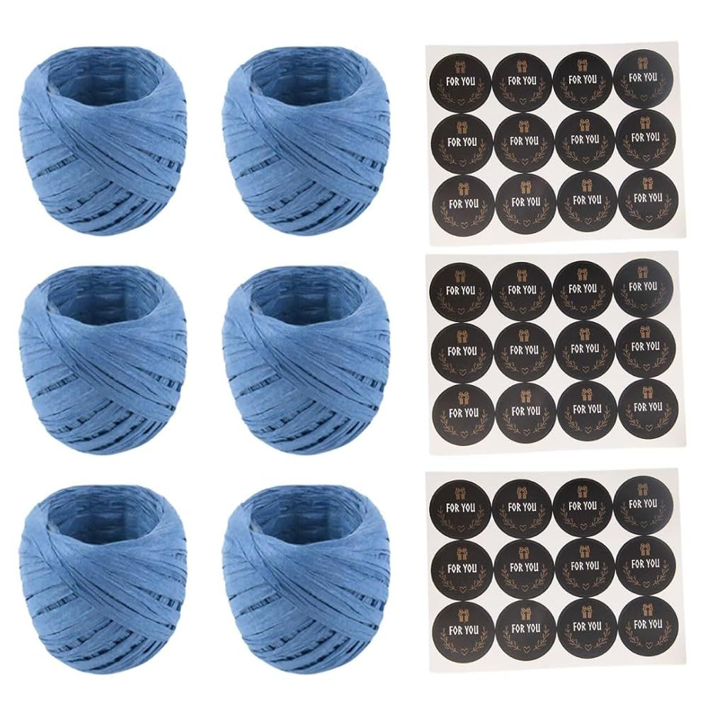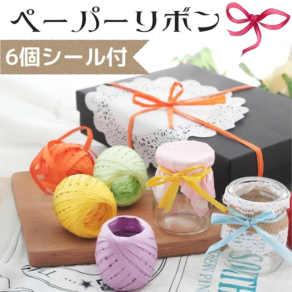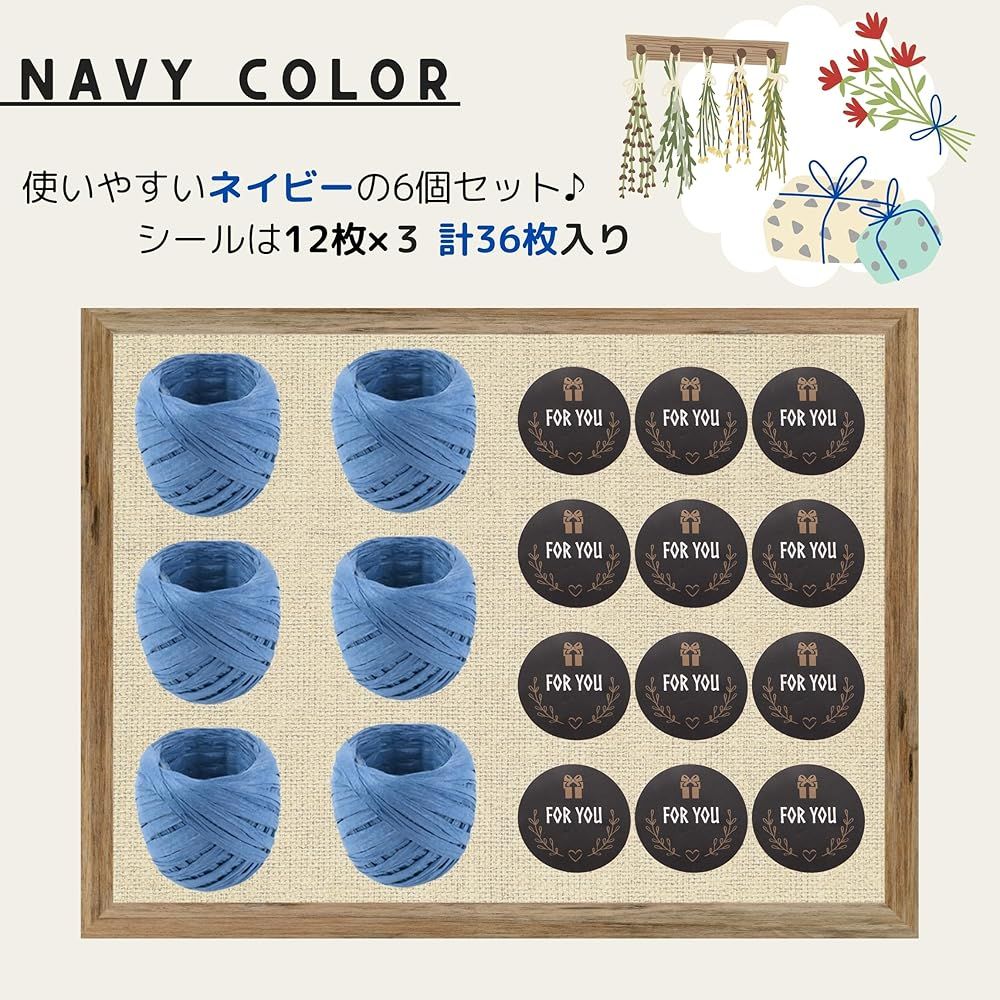 ラフィア ペーパーリボン ラッピング 紙リボン 紙紐 1巻 20m ギフト包装 6個 MSW2557ネイビー(シール付)
