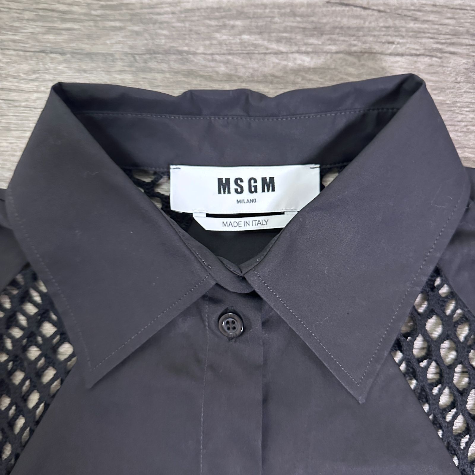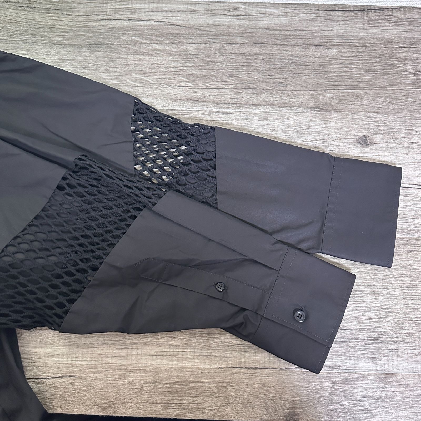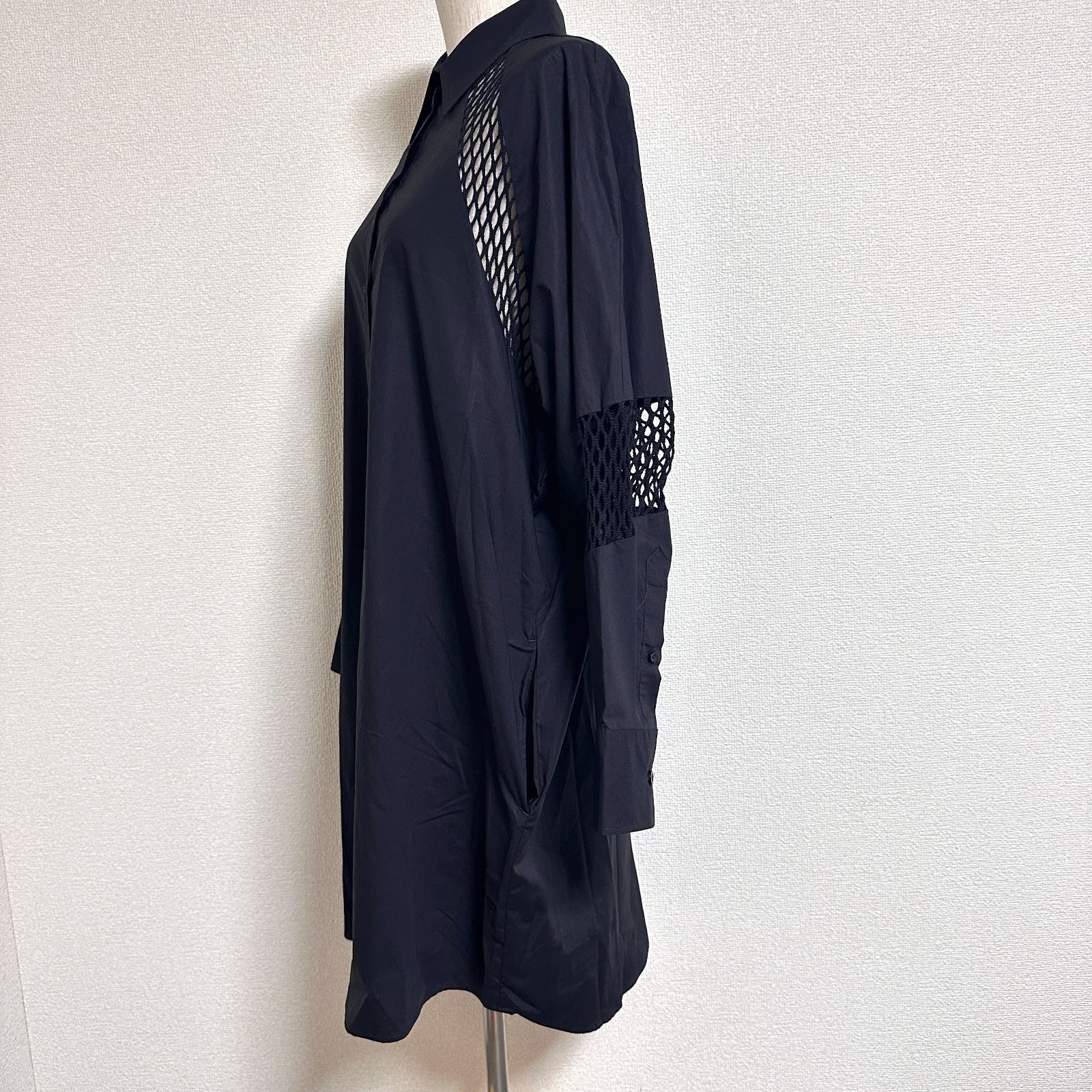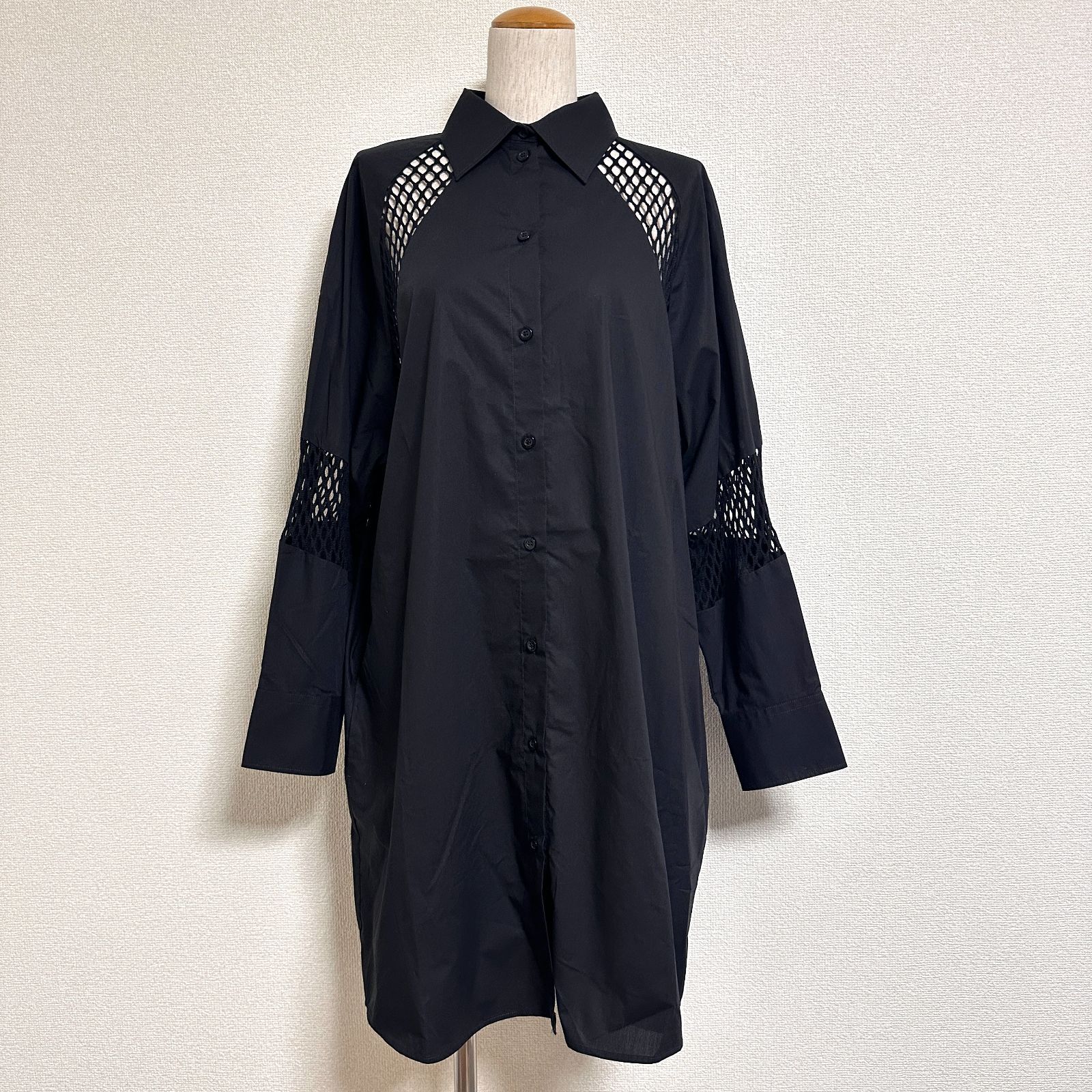 ボディとスリーブに大胆なカットディテールが施され、メッシュネットがハイブリッドされたユニークなデザイン