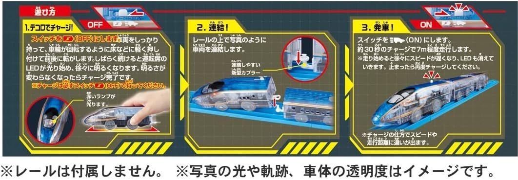 クリアボディー仕様 プラレール初の新開発車両!新開発プラレール 電池いらずで出発進行! 電池なしで電動走行!!