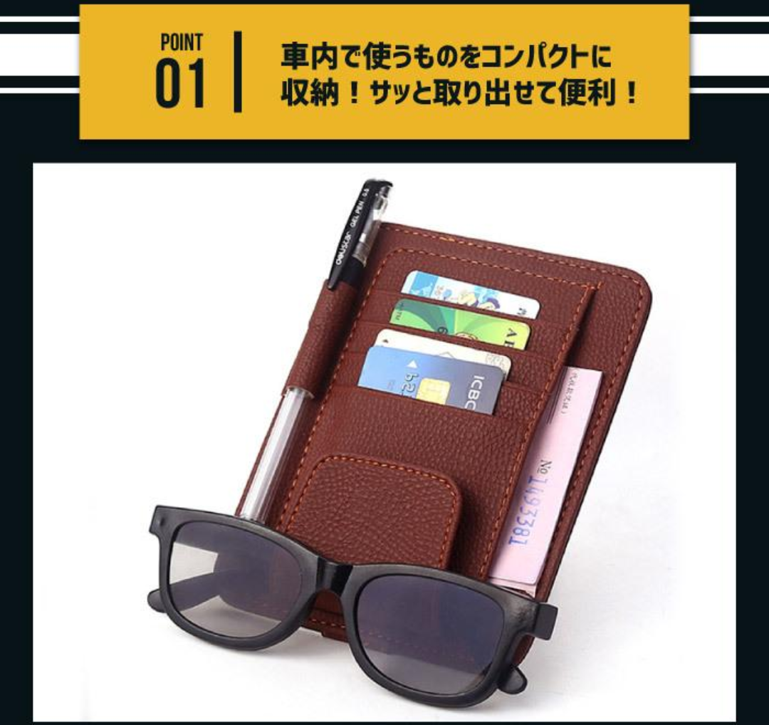 駐車券、カード類、ペン、チケット、サングラスなど車内で使うものをサッと取り出せてコンパクトに収納!