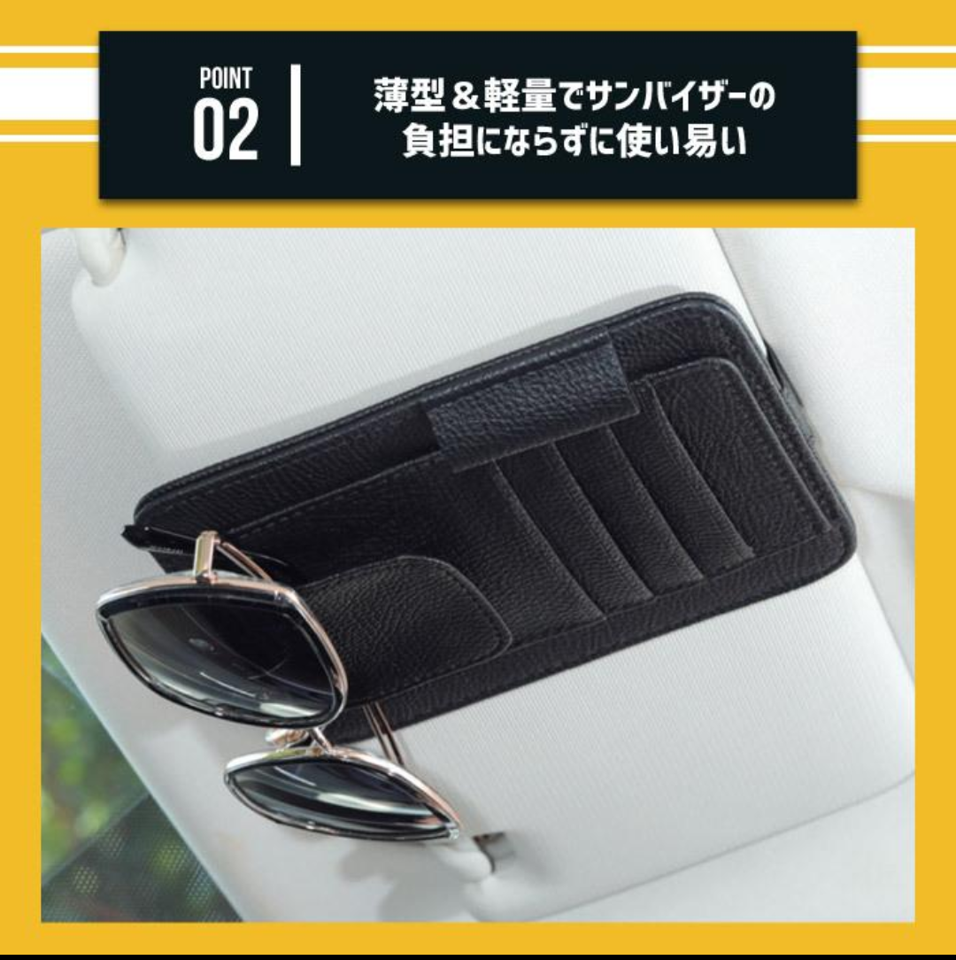 サンバイザー 収納 サングラス ホルダー 車 収納ポケット メガネ クリップ 多機能