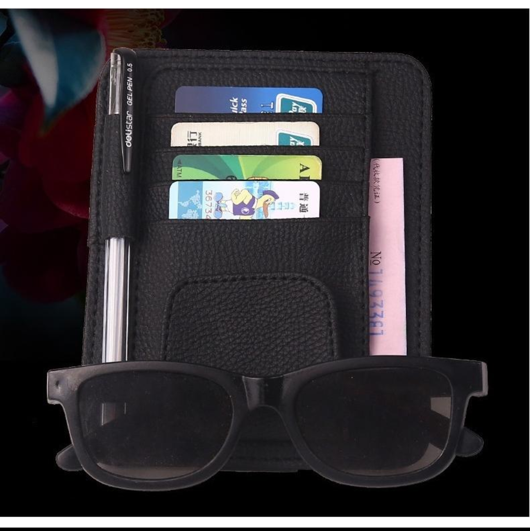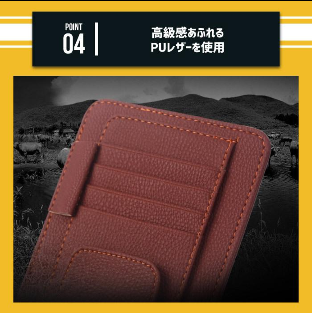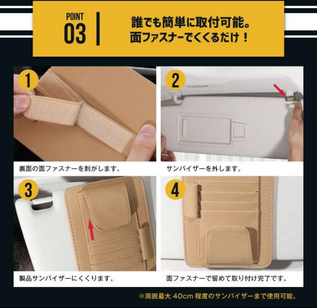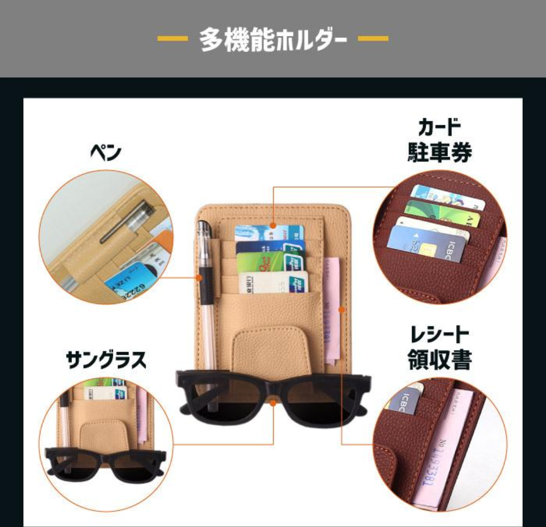 車のサンバイザーに簡単取付!収納ポケット付車載用ホルダー。