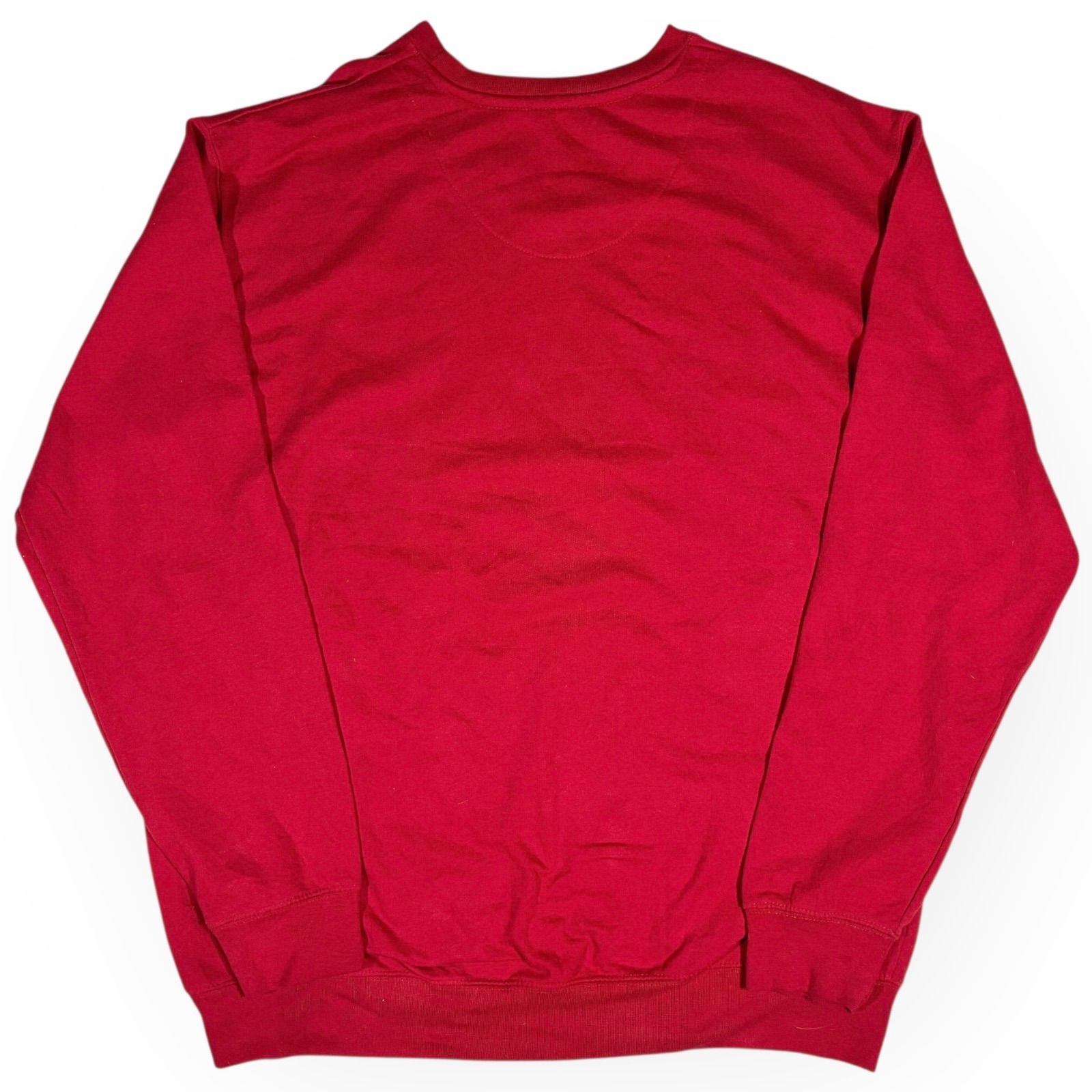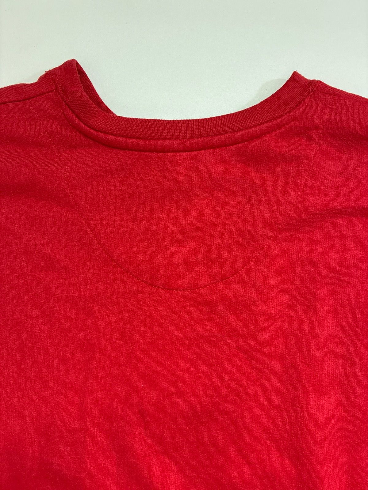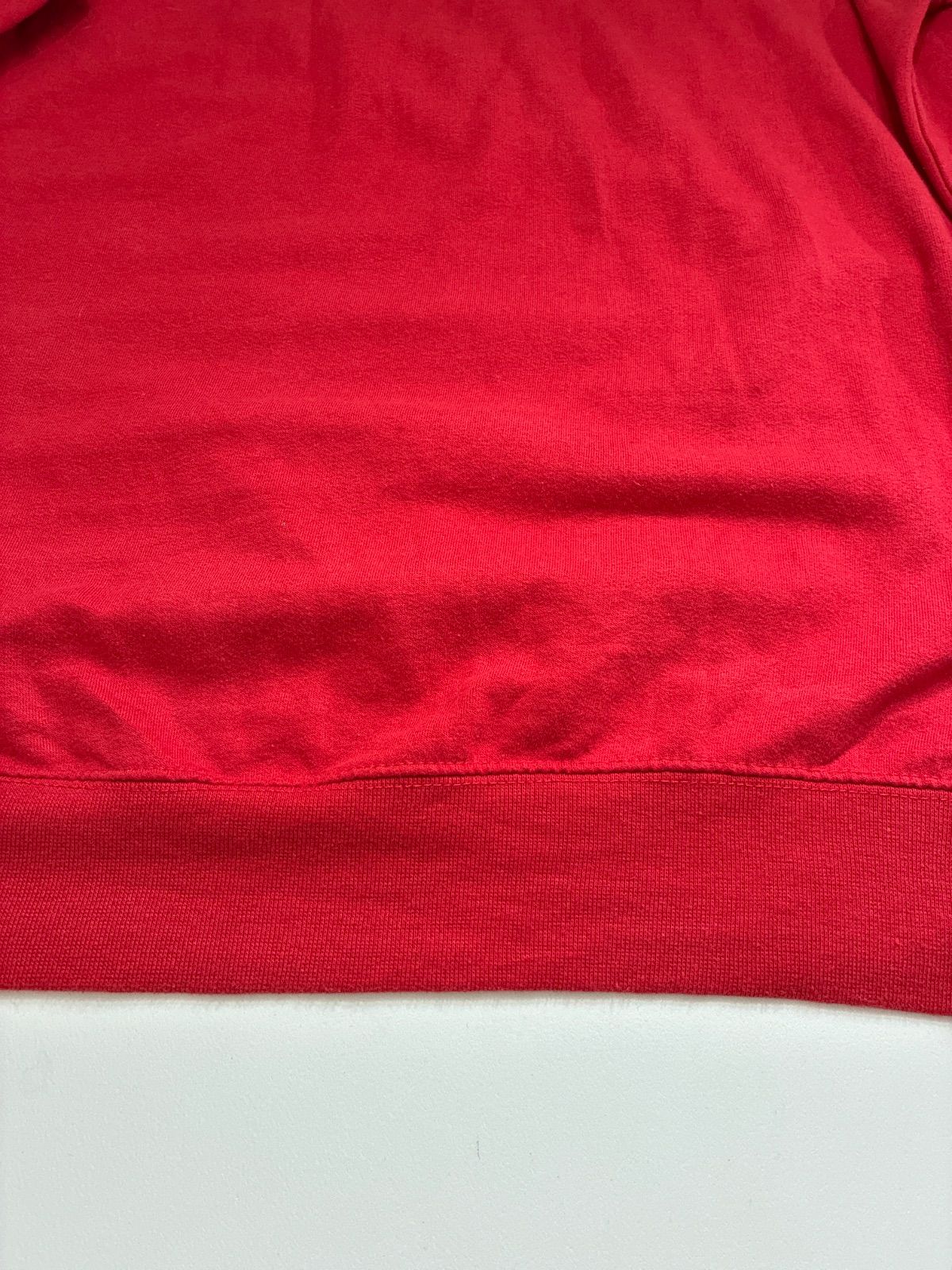 鮮やかなレッドのボディに、定番のロゴが映える、コーディネートの主役になる一着です。
