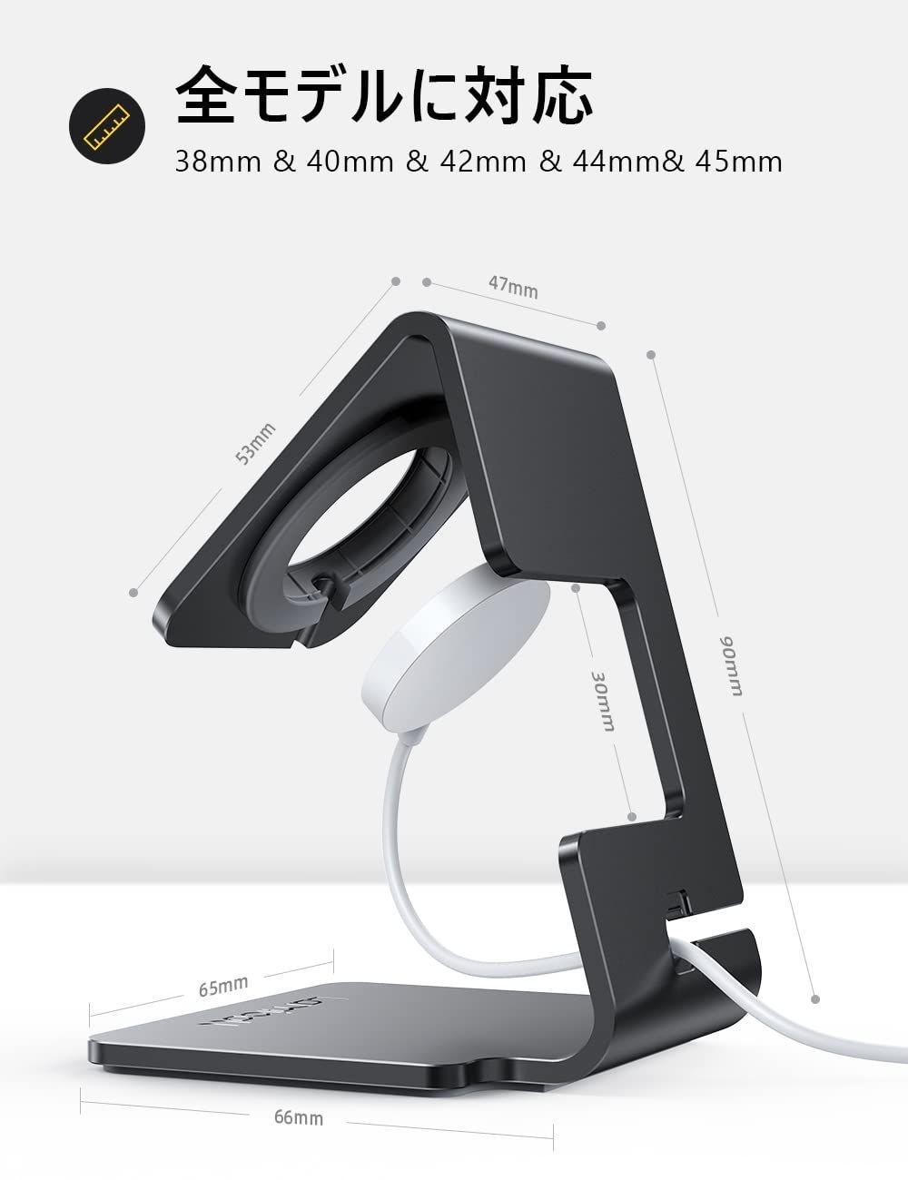 Apple Watch対応 充電スタンド Series10 9 8 7 6 SE ultra 5 4 3 2 38mm 40mm 41mm 42mm 44mm 45mm 46mm 49mm 全機種対応 置くだけ 充電 Lomicall アップルウォッチ 卓上スタンド : アルミ 充電 ドック 充電機 スタンド デスク すたんど ホルダー 卓上 充電ケーブル 収納 ナイトスタンド クレードル ブラック