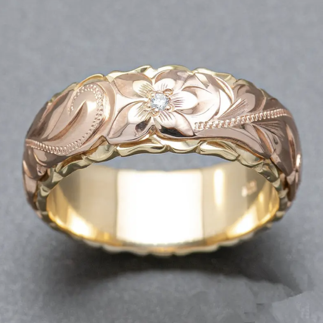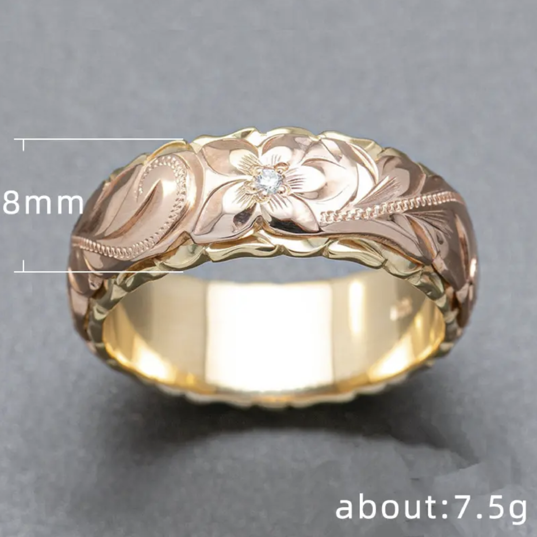 このハワイアンジュエリーリングは、美しいプルメリアと波の模様が彫り込まれたシルバーリングです。独特の美しさと個性的なデザインが魅力のハワイアンジュエリーは、ハワイの文化や自然をモチーフにしています。