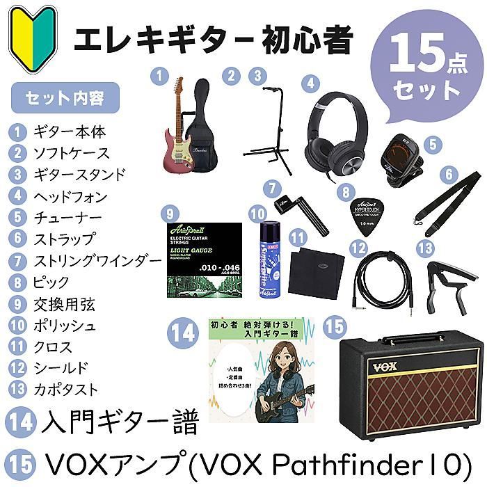 【 BGM 】エレキギター入門全部入りセット ギター / ブラックの特徴 ローステッドメイプルネックを使用した万能型のストラトタイプ !! BST-2-RSM/M BLK アンプ / 本体の特徴 見た目以上のパワフルサウンド 見た目とは裏腹のパワフルサウンドを奏でる VOX( ヴォックス ) "Pathfinder 10" 。 10W ながら自宅練習はもちろん、レコーディング、ライブ・スペースでも十分耐えうる出力を確保。独特の存在感を醸し出す VOX アンプのルックスとサウンドは、あらゆるシチュエーションで異彩を放つことは必至。 DJ ヘッドホン / 【ブラック】 KCX85_BLK / 低音抜群密閉型ヘッドホンの特徴 リスニングや DJ に最適な設計 40mm のダイナミックなラウドスピーカーは、圧倒的な音のクオリティを実現しキックなどの低音を豊かに表現。 32 オームのスピーカーインピーダンスにより、バランスの取れた豊かな音域を実現しました /ARIA( アリア ) / ACT-SP BK クリップ式マルチモードチューナーブラックの特徴 大幅にアップデートしたディスプレイ ギターや管楽器、バイオリン等に挟んで使用するクリップ式チューナー。 /ARIA( アリア ) / GS-2003B ギタースタンドの特徴 アリアのギタースタンドです アリアのギタースタンドです /ARIAPROII( アリアプロツー ) / JG-10X S/L - OFC ケーブル - の特徴 無酸素銅線 (OFC ケーブル ) を使用したギターケーブル OFC ケーブル ポリッシュ /ARIA( アリア ) / Super Brite SB-8 - 楽器用ポリッシュ - の特徴 ボディーをピカピカに! ギター、ベースをはじめ、様々な楽器に使用できる楽器メンテナンスの必需品!! /ARIAPROII ( アリアプロツー ) / AGS-800L の特徴 ARIAPROII のエレキギター弦です。ライトゲージ ...... /ARIA ( アリア )/CC-500 クリーナークロスの特徴 速乾性に優れた洗浄能力があるアナログディスククリーナー ガラス・レンズ用にも使用されるポーラー・フリース素材。柔らかく、吸水性にも優れた楽器用クロス。アリアロゴ押し印入り。 / ブラックの特徴 ストラップ長め派・短め派にも対応 自分の弾きたいスタイルに合わせてストラップの長さを調整可能 /ARIA( アリア ) / AW-01 ストリングワインダーの特徴 高級ストリングワインダー ストリングスワインダーもしくはアルトベンリー弦交換の必需品 /gold の特徴 6 弦用カポタスト 多機能デザイン 幅広いギタータイプに対応し、演奏スタイルを問わず活躍します。 簡単操作&クイックリリース ワンタッチで素早く装着・取り外し可能。ライブや練習中でもスムーズにキーをチェンジできます。 完璧な音質 弦を均等に押さえ、音の濁りやビビりを防止。クリアで安定したサウンドを実現。 使いやすさ抜群 軽量かつコンパクトで持ち運びもラクラク。初心者からプロまで安心して使える設計です。 /ARIAPROII ( アリアプロツー ) / P-HT05/100 BK の特徴 ギター用のピックです。シェイプはティアドロップ、色は ...... 教則動画 / 初心者でも絶対弾ける!入門向けギター譜!【非売品】の特徴 初心者がまず挑戦するべき譜面の詰め合わせ! 人気アーティストのあの名曲から、今の時代に欠かせない定番ソングまで収録 !コードを押さえるのが初めての方でも、安心して取り組めるやさしいアレンジ付き! 有名なあの曲も収録!?楽しみながら自然と上達できます。 ■VOX( ヴォックス ) / Pathfinder 10 ギターアンプ: 1 点 ■Euro Style( ユーロスタイル ) / KCX85_BLK / 低音ズンズン抜群密閉型ヘッドホン: 1 点 ■ARIA( アリア ) / ACT-SP BK クリップ式マルチモードチューナーブラック: 1 点 ■ARIA( アリア ) / GS-2003B ギタースタンド: 1 点 ■ARIAPROII( アリアプロツー ) / JG-10X S/L - OFC ケーブル - : 1 点 ■ARIA( アリア ) / Super Brite SB-8 - 楽器用ポリッシュ - : 1 点 ■ARIAPROII ( アリアプロツー ) / AGS-800L : 1 点 ■ARIA ( アリア )/CC-500 クリーナークロス: 1 点 ■ARIA( アリア ) / GST-06B / 黒ブラック / ギター・ベースストラップ: 1 点 ■ARIA( アリア ) / AW-01 ストリングワインダー: 1 点 ■EuroStyle / ギターカポ、アコースティック、エレキギター - ギター( 6 弦)用カポタスト - : 1 点 ■ARIAPROII ( アリアプロツー ) / P-HT05/100 BK : 1 点 ■ 初心者でも絶対弾ける!入門向けギター譜!【非売品】: 1 点 ■Bacchus( バッカス ) / BST-2-RSM/M BGM エレキギターローステッドメイプルネック [ ケース付属 ] : 1 点 サービス品・ノベルディ・セット品の納期は、ご注文のタイミングにより後日配送になる場合がございます。仕様の変更がある場合は同等品となります。以上、予めご了承お願い致します。全て新品。ケーブル・消耗品以外メーカー 1 年保証書付のでご安心してお買いもの頂けます。