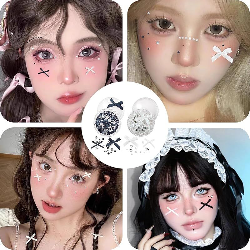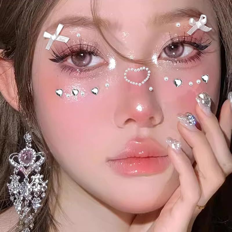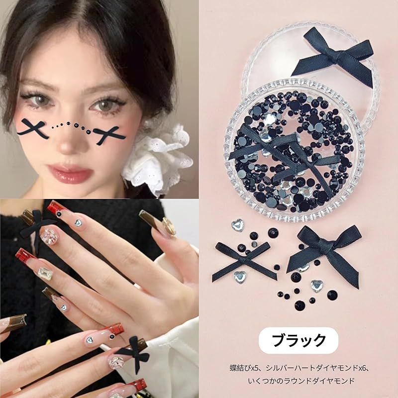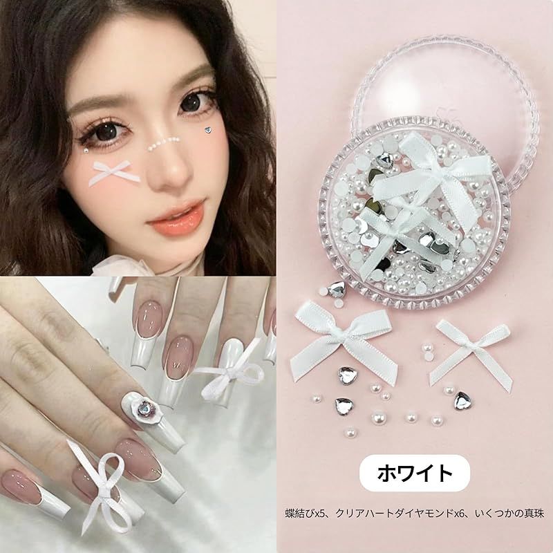 【メイクパーツ】蝶結びリボン、ハート、パール、ラインストーン、お好みに合わせて自由に組み合わせることができます。あなたのユニークな魅力を際立たせ、個性的な個性を発揮します。