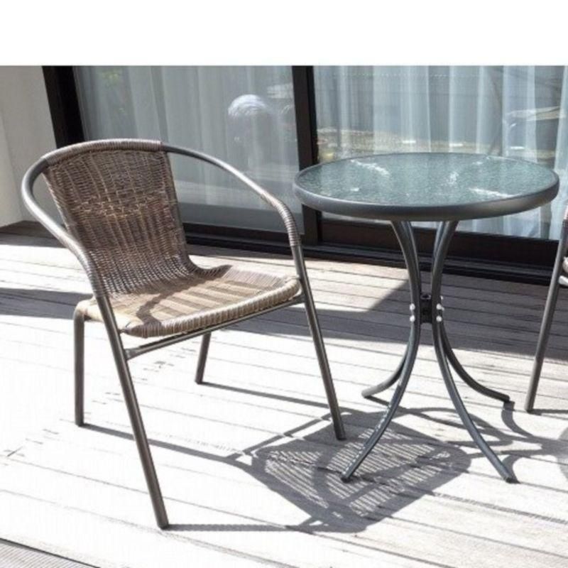 3点セット:ガラステーブル1点、ラタン調チェア2点 送料込23200円