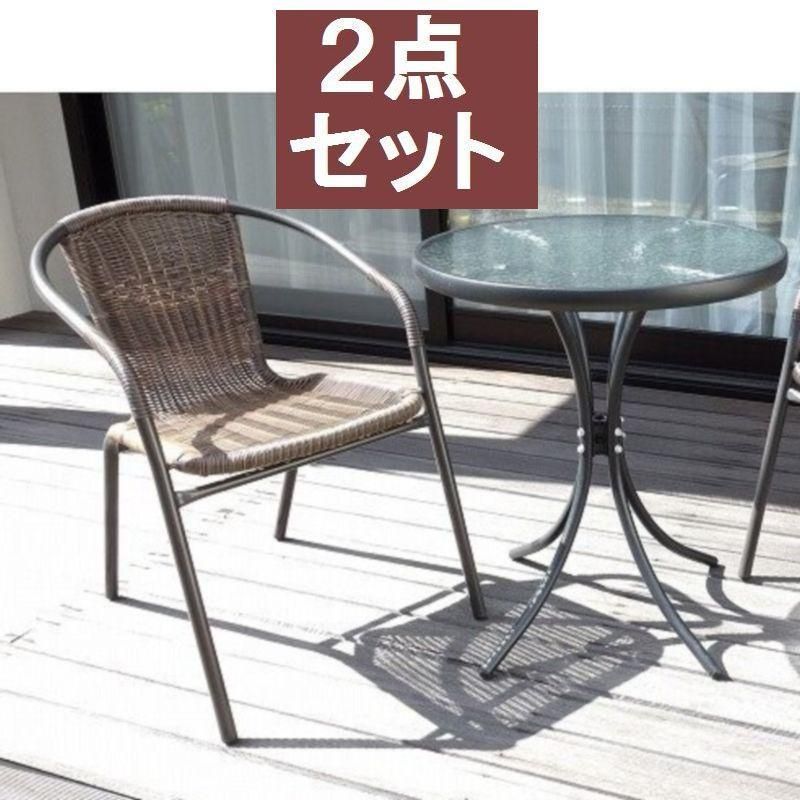 2点セット:ガラステーブル1点、ラタン調チェア1点 送料込18300円