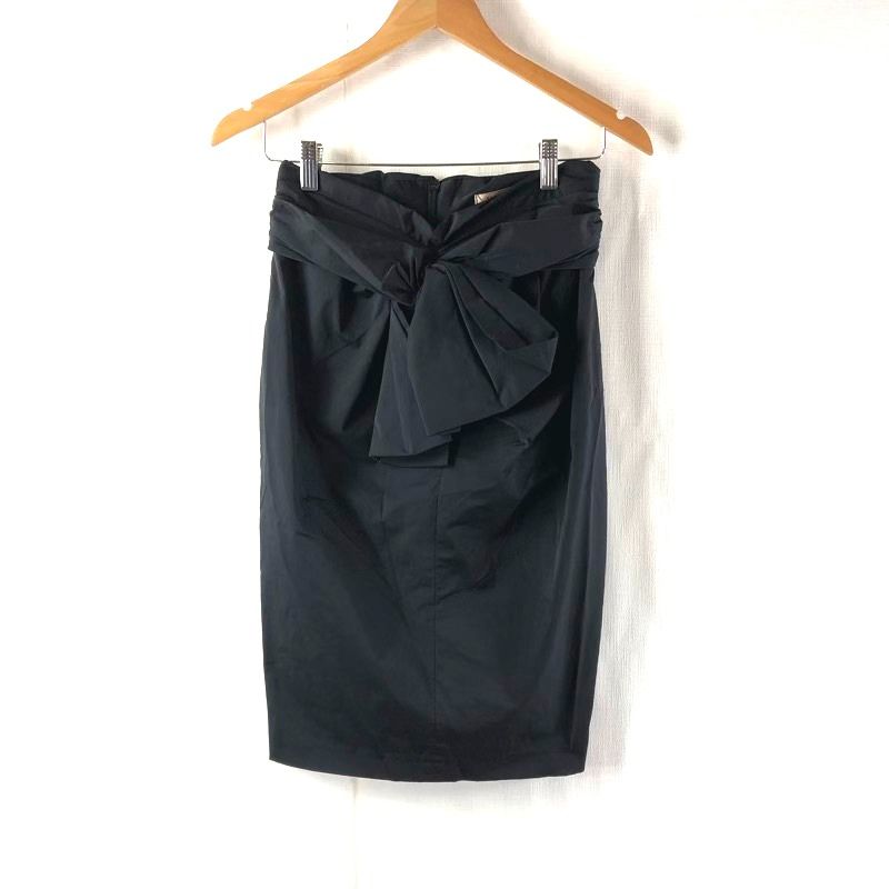 CHAU MONT スカート リボンデザイン スリット 裏地付き 黒 Sサイズ 2025091400094