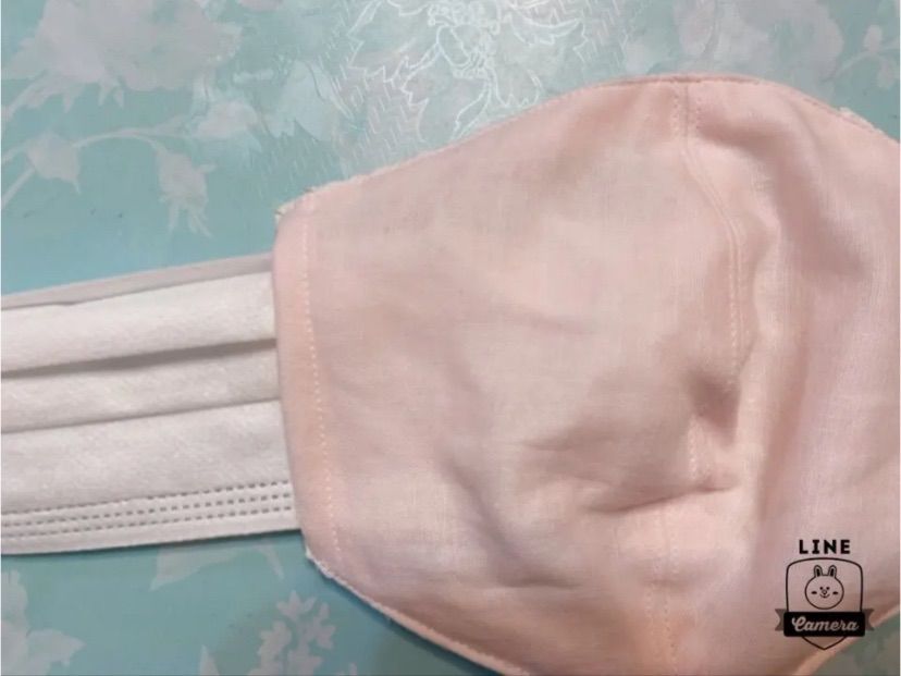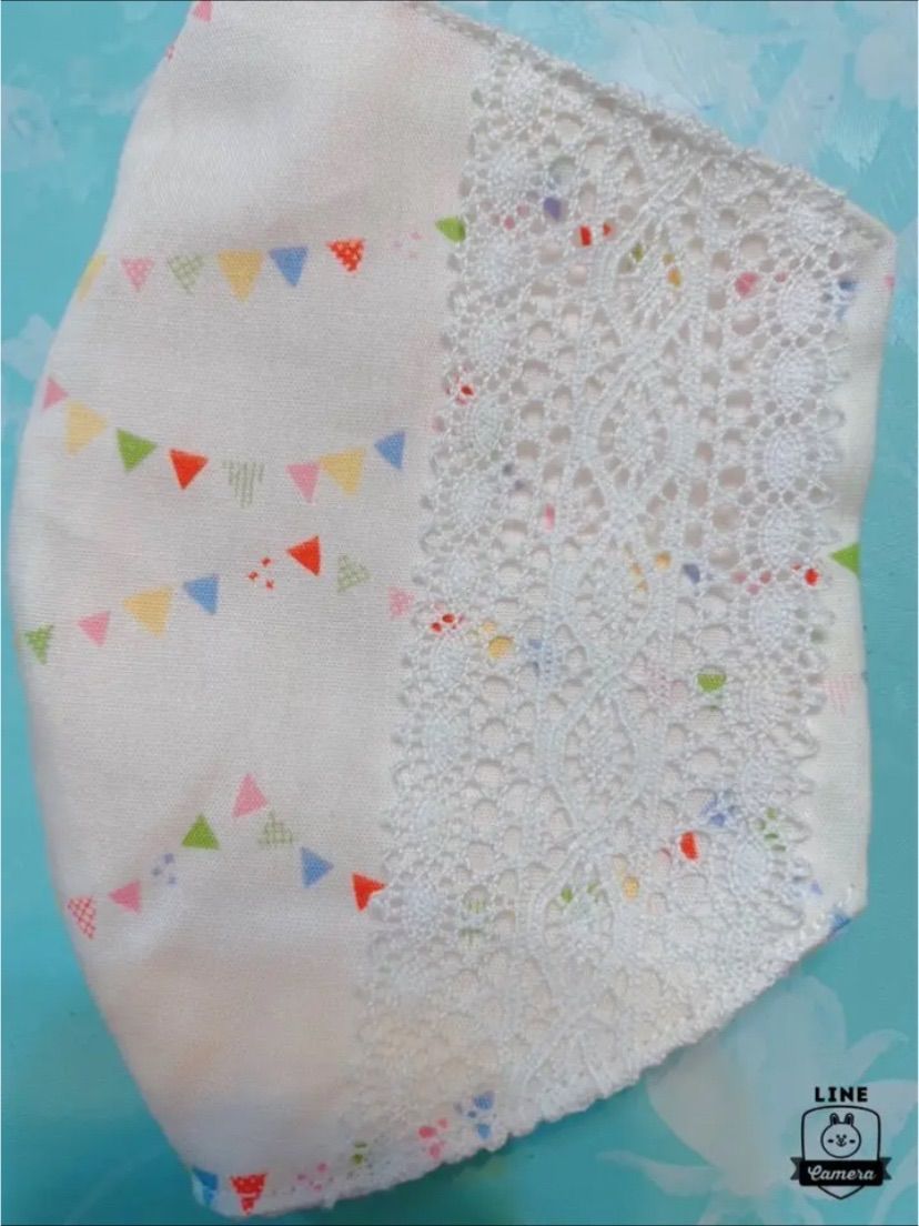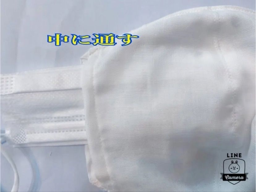 1.上側のレース帯に不織布をいれると...口元には、優しいガーゼの生地。不織布が苦手な方も大丈夫!レースのかわいい帯が、ポイントになります。