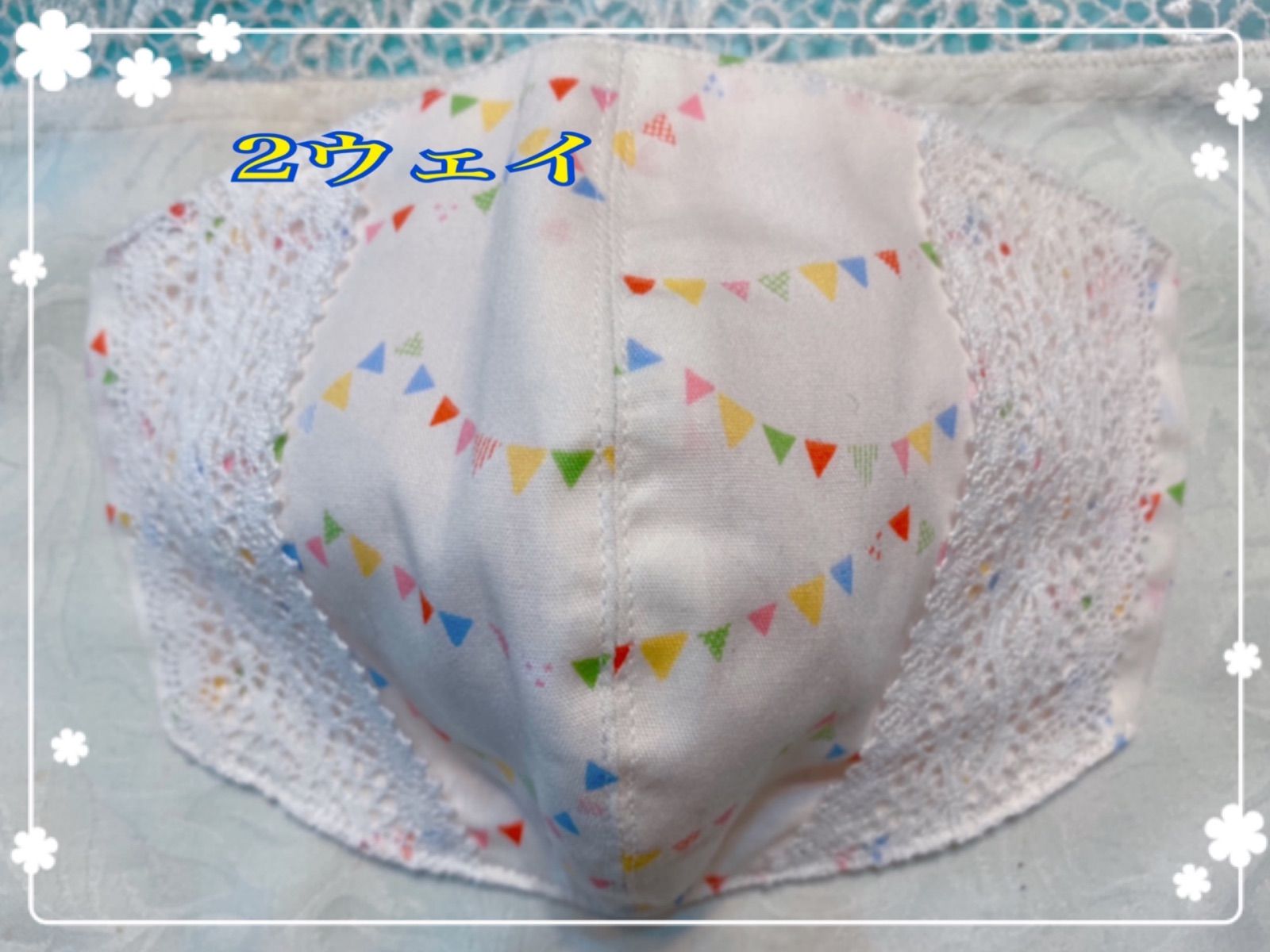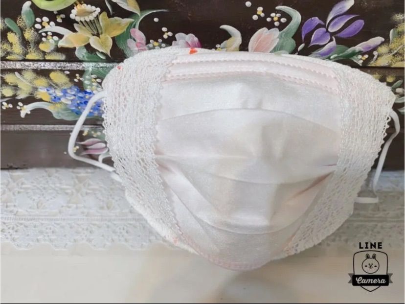 全面レース生地も、可愛いレース帯も見えます。口元にはガーゼが、不織布が苦味な方も大丈夫
