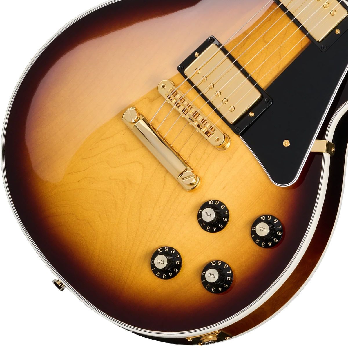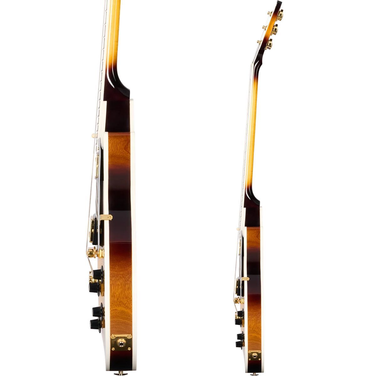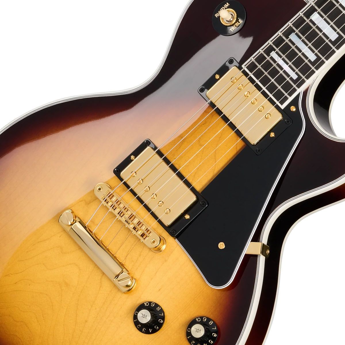 1970年代のクラシックな仕様を特徴とし、マホガニーボディに3ピース・メイプルトップを採用。ボディには、5プライのトップ・バインディングと3プライのバック・バインディングが施されています。70年代プロファイルのボリュート付メイプルネック、バインディングを施した22ミディアム・ジャンボフレットのエボニー指板にはマザーオブパールのブロックインレイ、さらにバウンド・ヘッドストックには、ギブソン・スーパー400に起源を持つ、有名なカスタム・スプリット・ダイヤモンド・ヘッドストック・インレイが施されています。アルミ製ナッシュビルTune-O-Maticとストップバー・テールピース、信頼性の高いGrover® Rotomatic®キーストーン・チューナー、Posi-Lok™ストラップロックはゴールドハードウェアを採用、さらに70年代仕様のウィッチハット型コントロールノブまで、当時の仕様を忠実に再現しています。ピックアップはCalibrated T-Typeハムバッカーを2基搭載し、オレンジドロップ・キャパシターを使用したハンドワイヤード配線で当時のトーンを忠実に再現します。