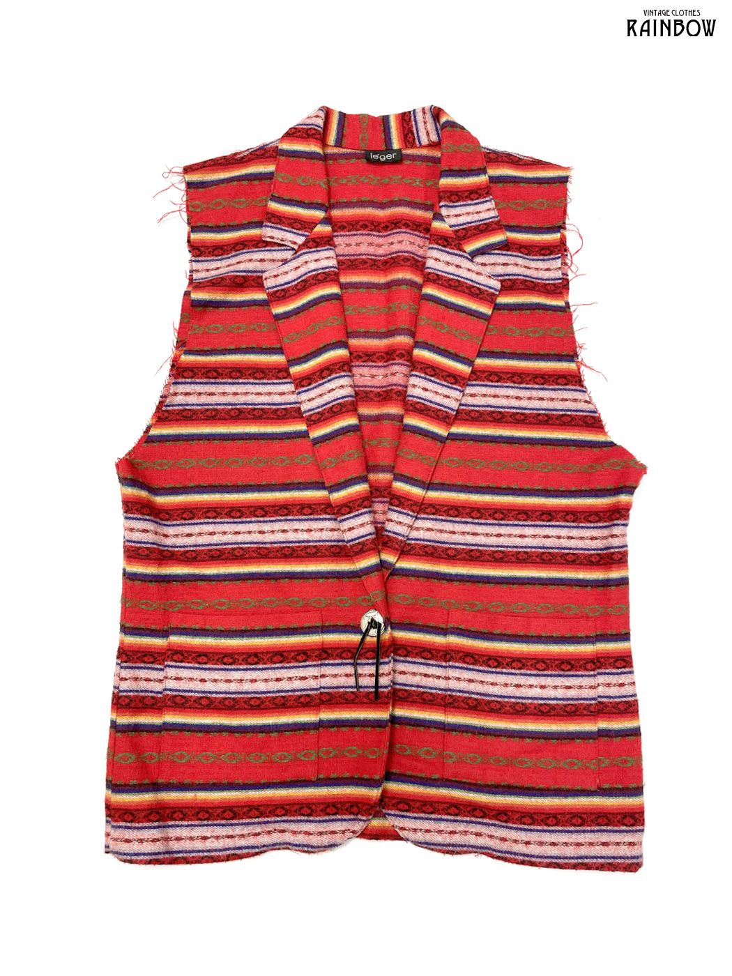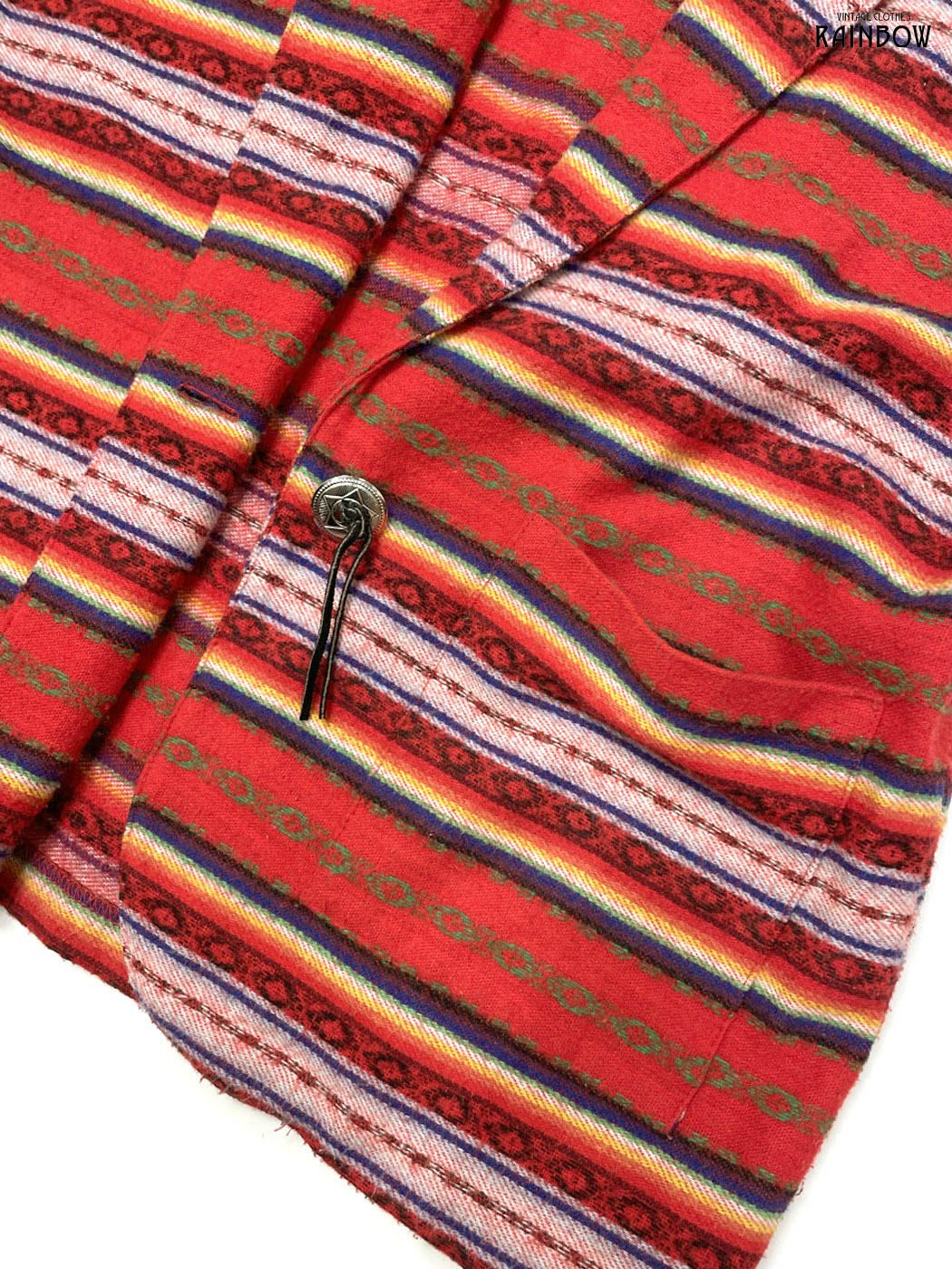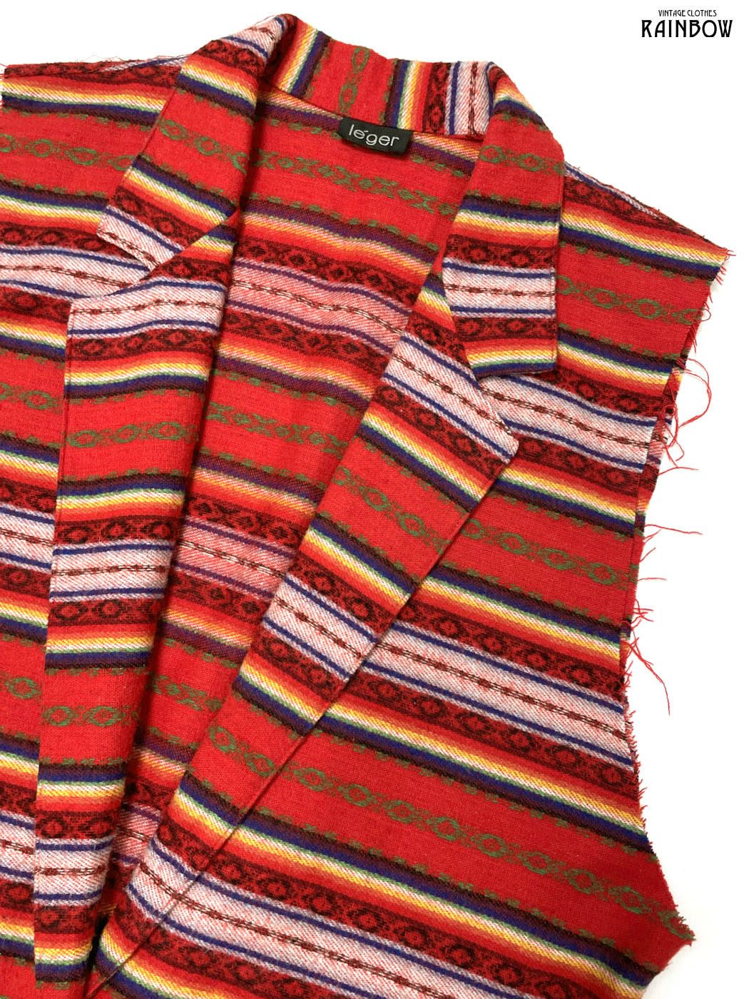 #トップス #ベスト #ノースリーブ #赤 #ボーダー柄 #メキシカン#メキシカンボーダー #刺繍 #前開き #テーラードベスト #ヴィンテージ #ウール #ベスト
