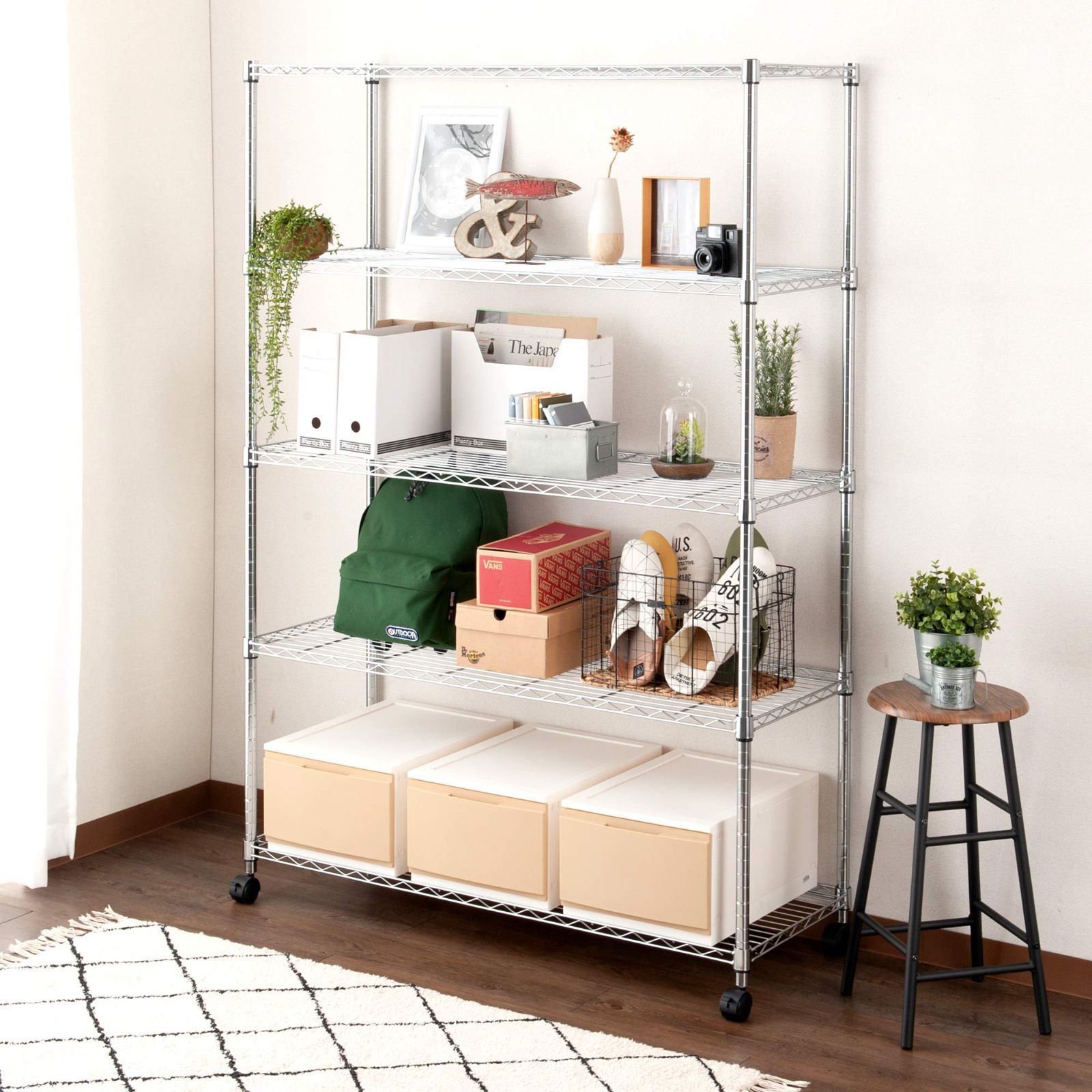 ドウシシャ 棚 ルミナス互換 メタルルミナスラック 幅120 5段 スチールラック 収納棚 幅120×奥行46×高さ180cm 全体耐荷重400kg頑丈 キャスター付き 防錆加工 ポール径25mmパーツ対応 業務用 シェルフ キッチン収納EL25-12185