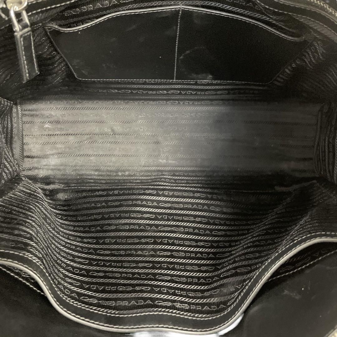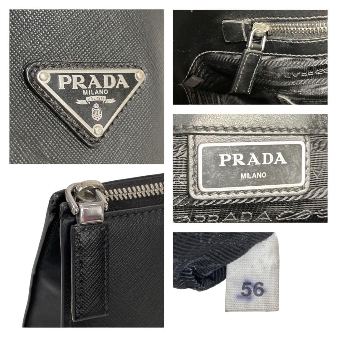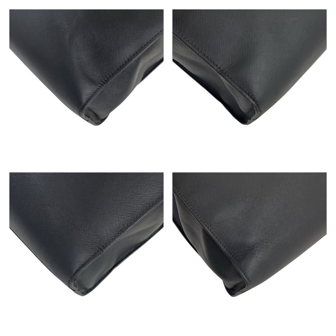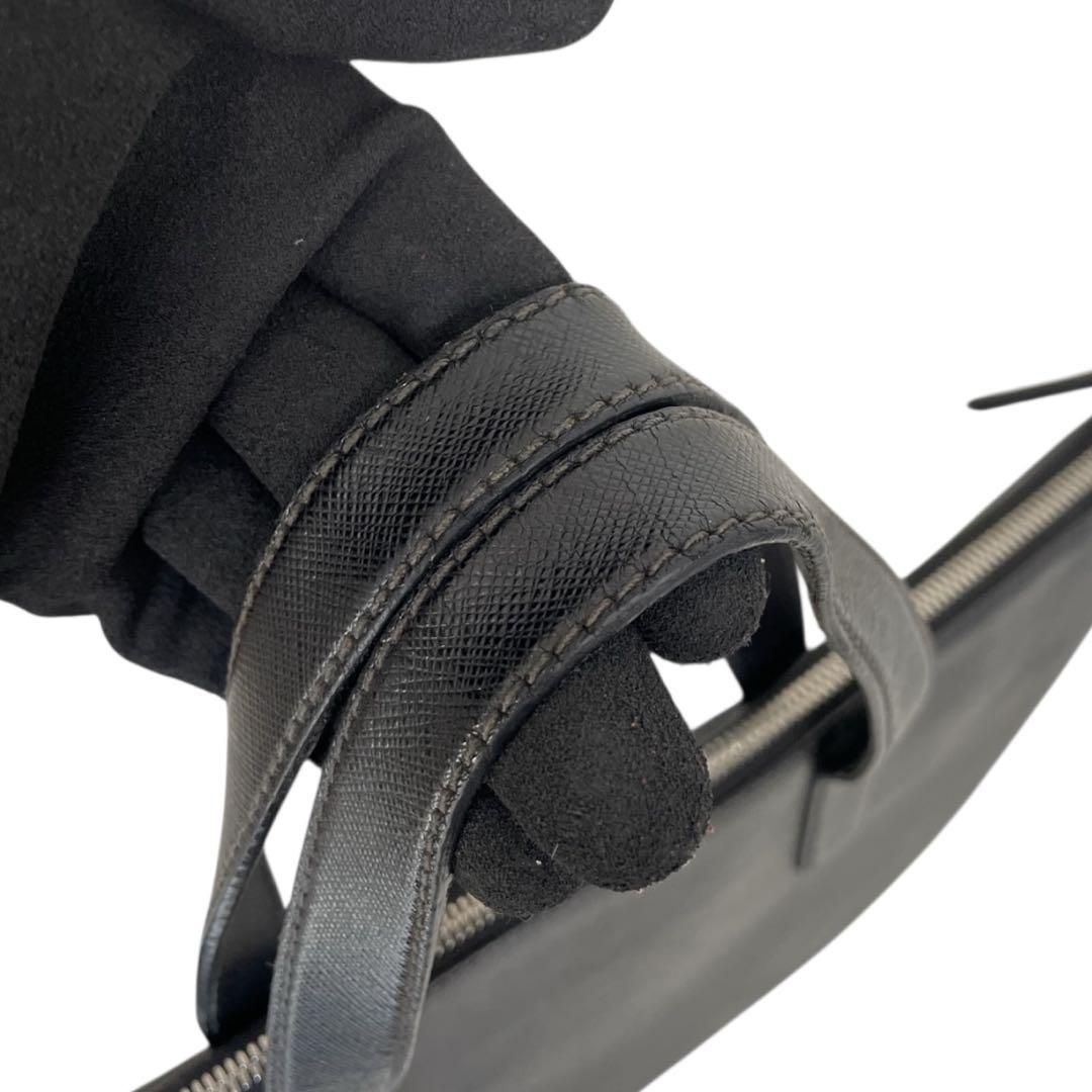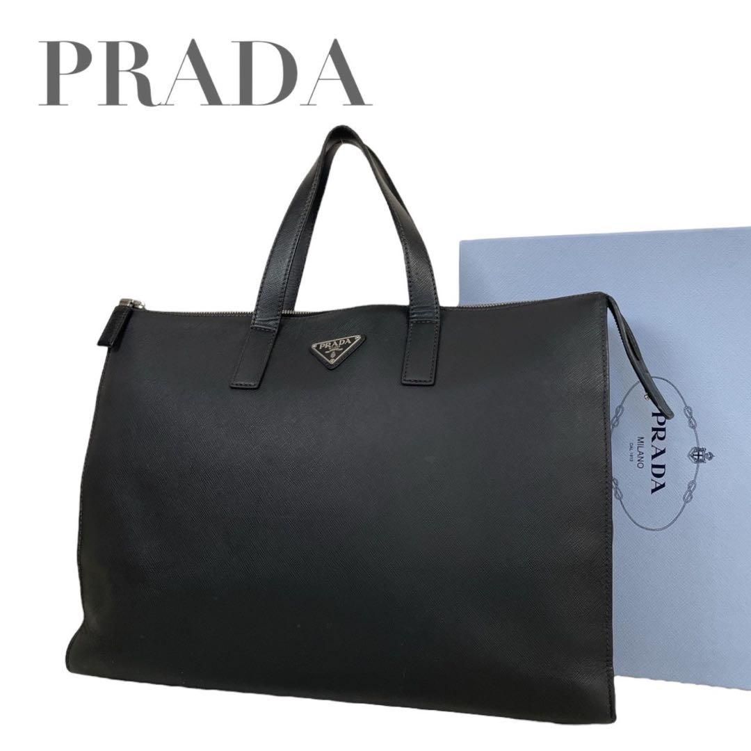 プラダを代表するアイコン素材「サフィアーノレザー」を贅沢に使用した、ブラックのビジネスバッグ。