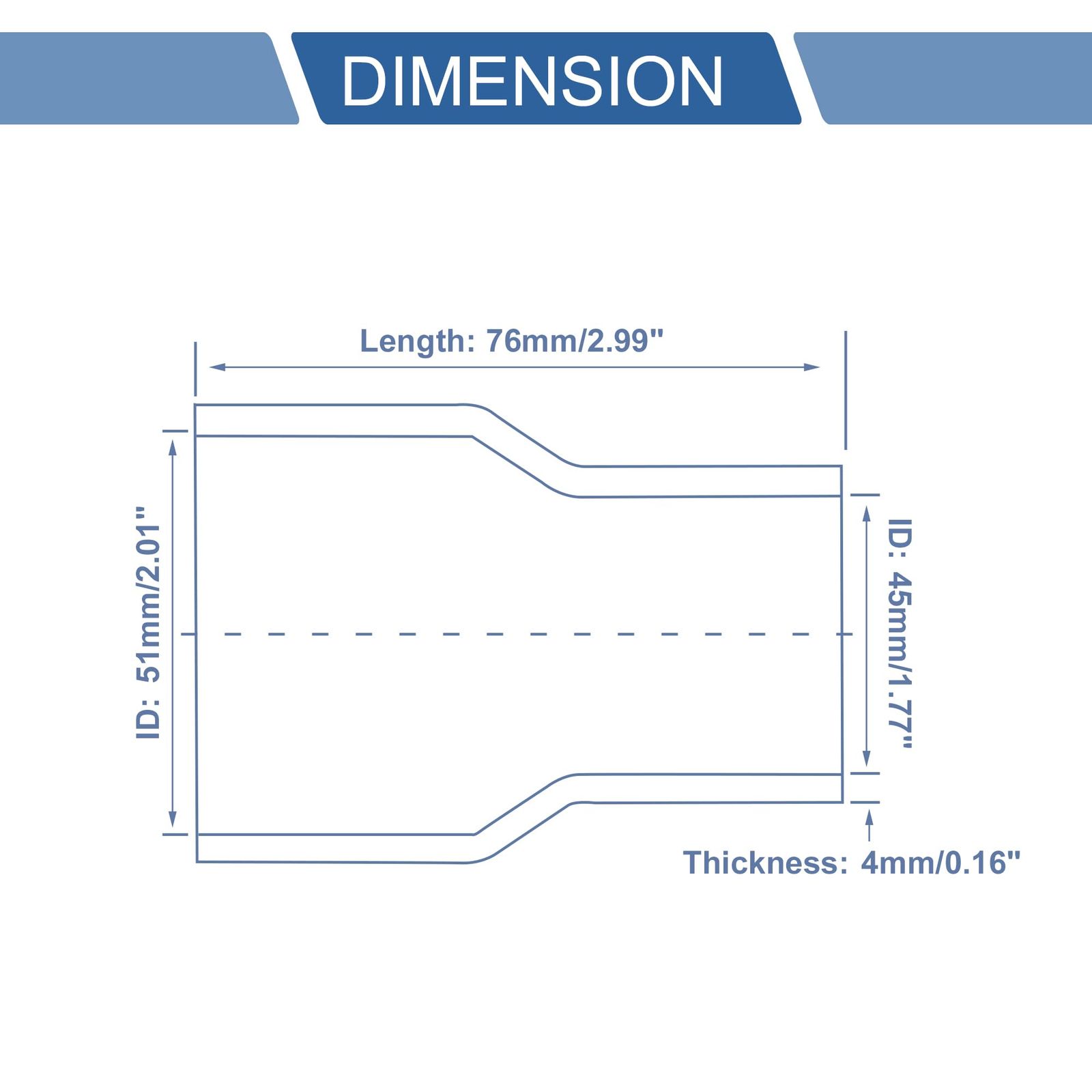 X AUTOHAUX シリコンホース 異径 シリコンチューブ ブラック 長さ76mm 内径51-45mm 汎用 自動車 建設機械 工業用 研究機器 農業機械 ダクト ヒーター インテーク インテークパイプ ラジェーター