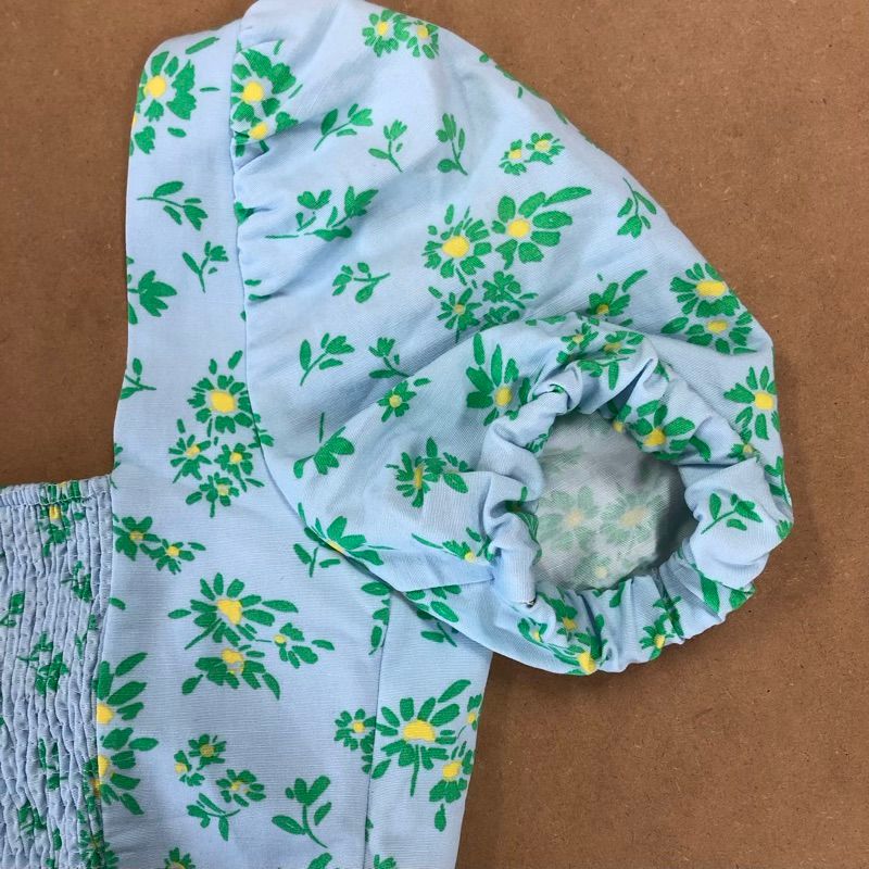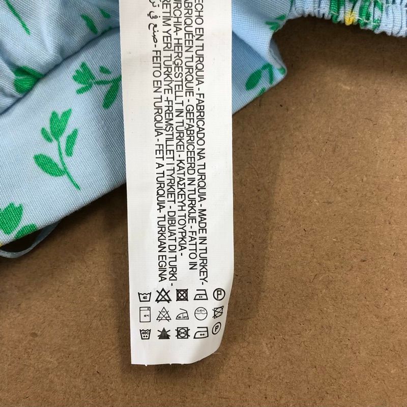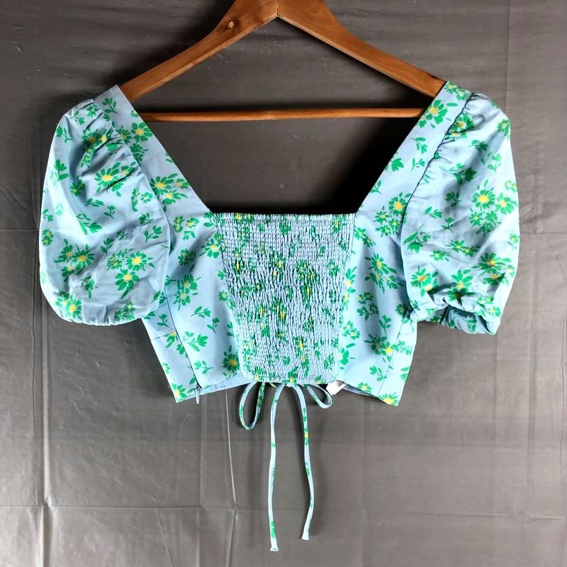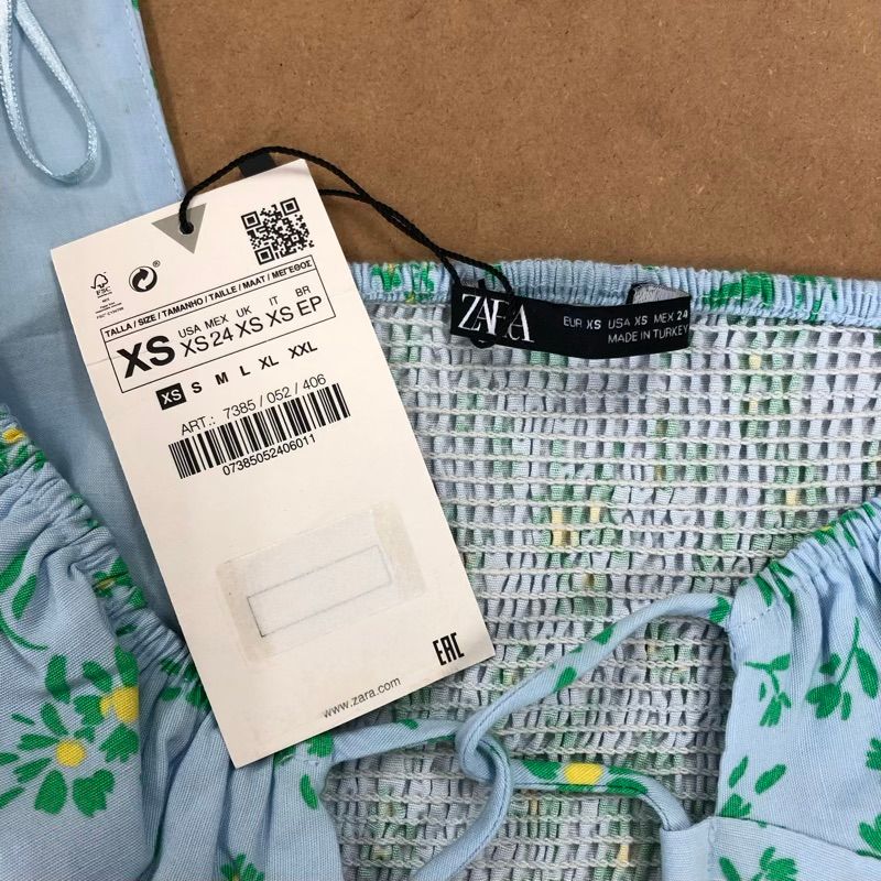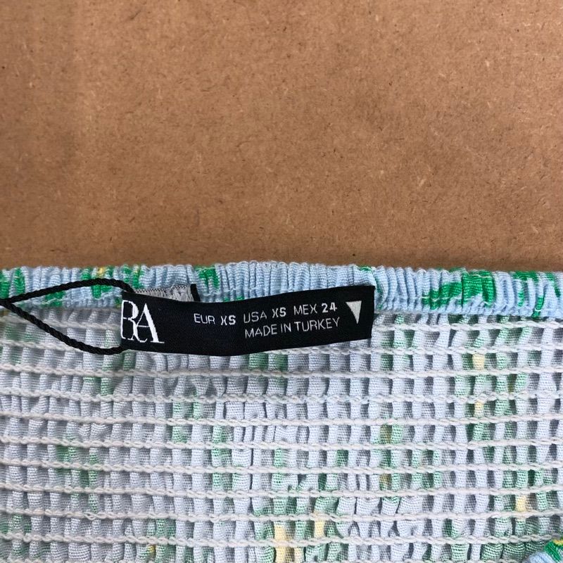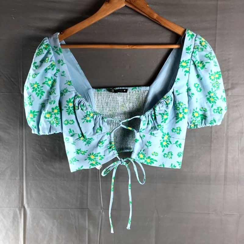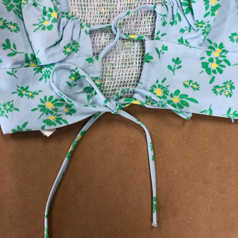 ザラ ZARA ビスチェ タグ付き パフスリーブ フラワープリント バックリボン 水色 XSサイズ 2025092000125