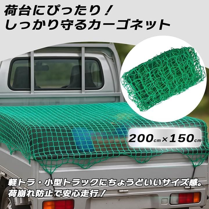 200x150cmの周囲ロープ付きカーゴネットは、業務からレジャーまで幅広い用途に対応する実用性の高いアイテムです。