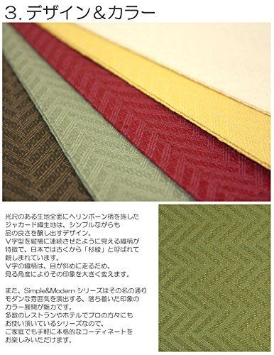 ●テーブルをトータルコーディネートできる豊富なアイテム展開(テーブルクロス・テーブルランナー・コースター・ティーマット・ランチョンマット) ●品の良いヘリンボーン柄のシックな6色展開 ●撥水加工も施してあるので、汚れに強くてお手入れが簡単です ●ダイニングテーブルやセンターテーブルはもちろんのこと、サイドボードや下駄箱の上など幅広く活躍!! ●洗濯機の弱で洗濯できます。※洗濯の際、柔軟剤は使用しないでください ●撥水の効果を消失させてしまう恐れがありますのでお洗濯の際、柔軟剤は使用しないでください。また、撥水加工が施されているのは、生地部分のみとなります