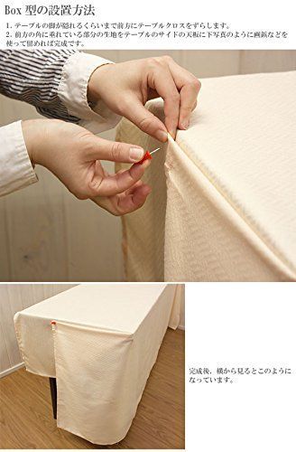 ●110cmx240cmのテーブルクロスは、幅180×奥行き45×高さ70cmの一般的な折り畳み式長テーブルを基準としたサイズです。 また、テーブルクロスは15~30cm程度垂らしてお使いいただくと、キレイに見えます。 垂れが15cm以内であれば幅180×奥行き45×高さ70cm意外のテーブルでもお使いいただけます