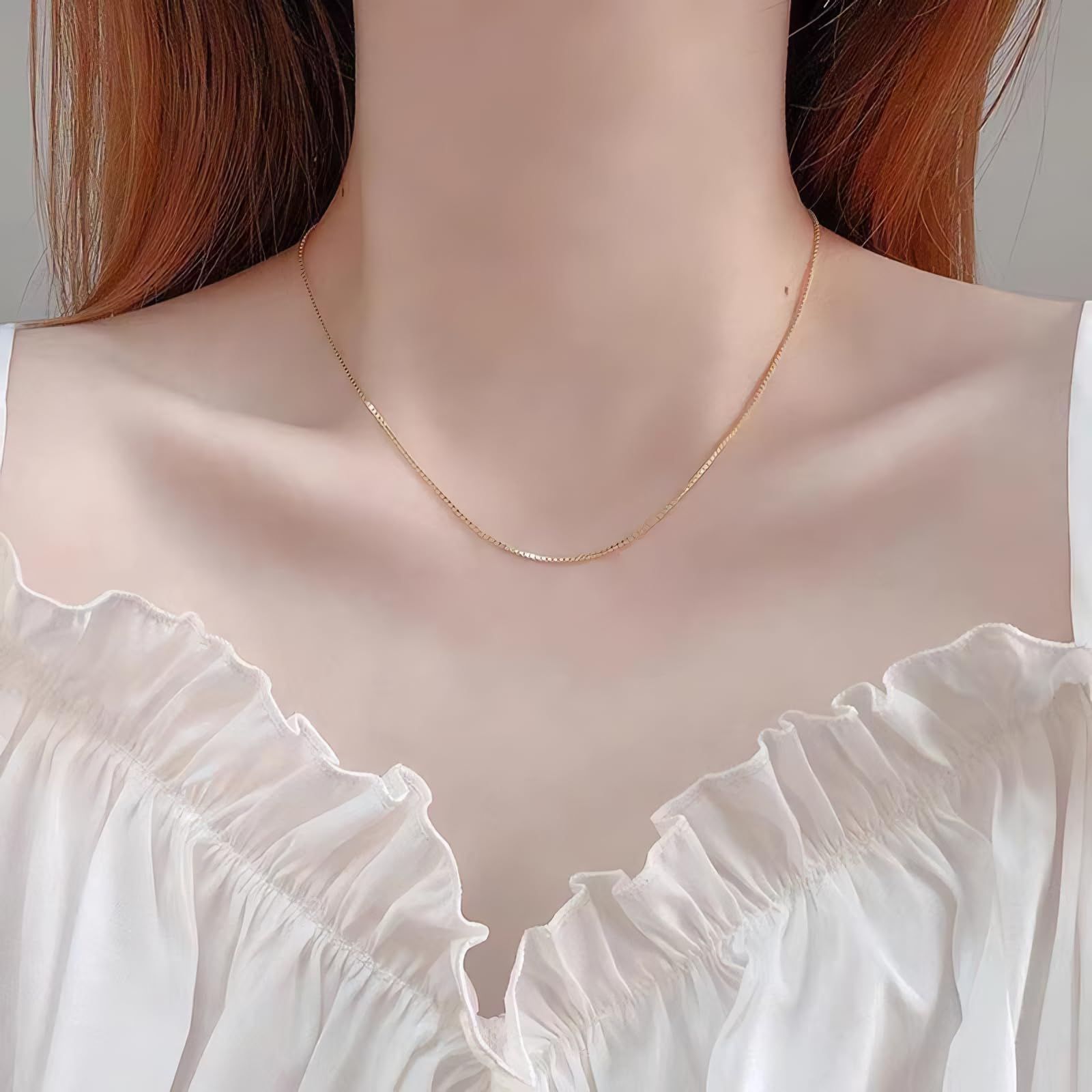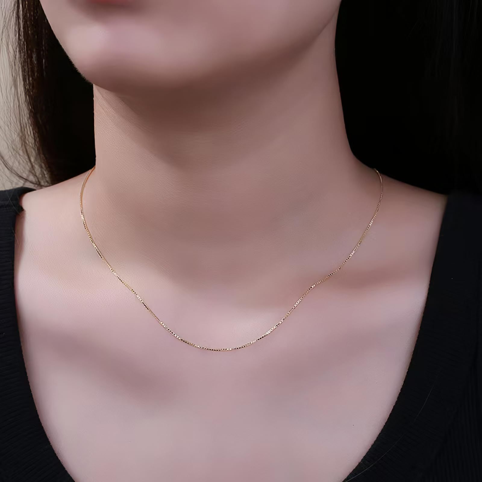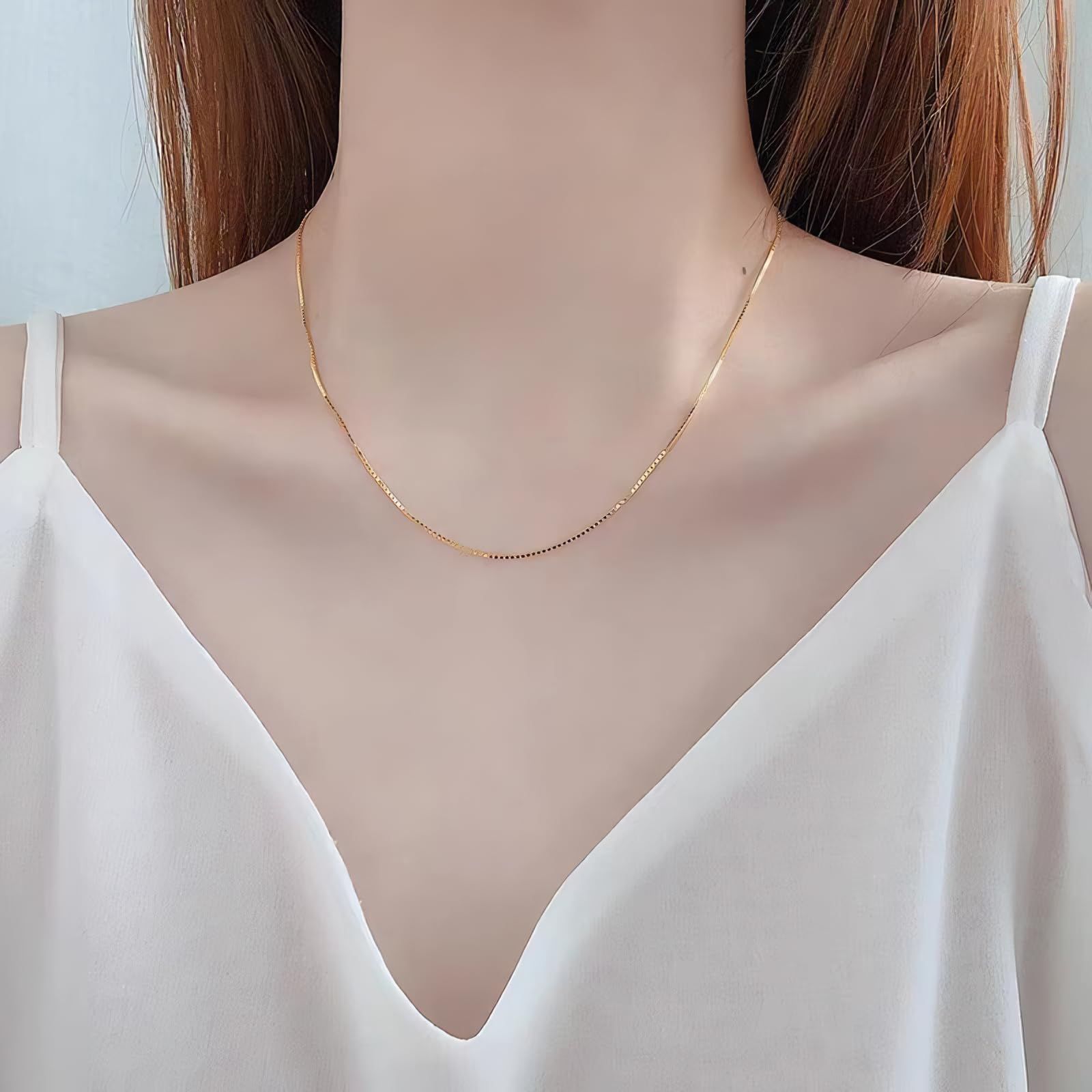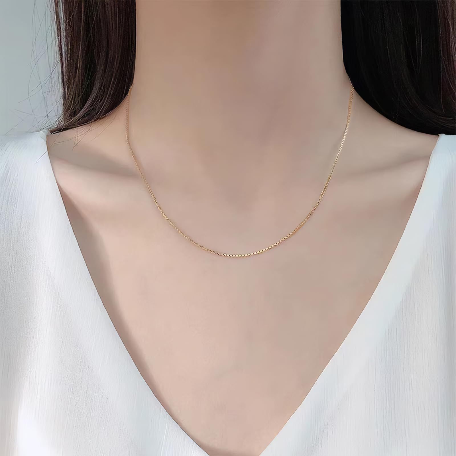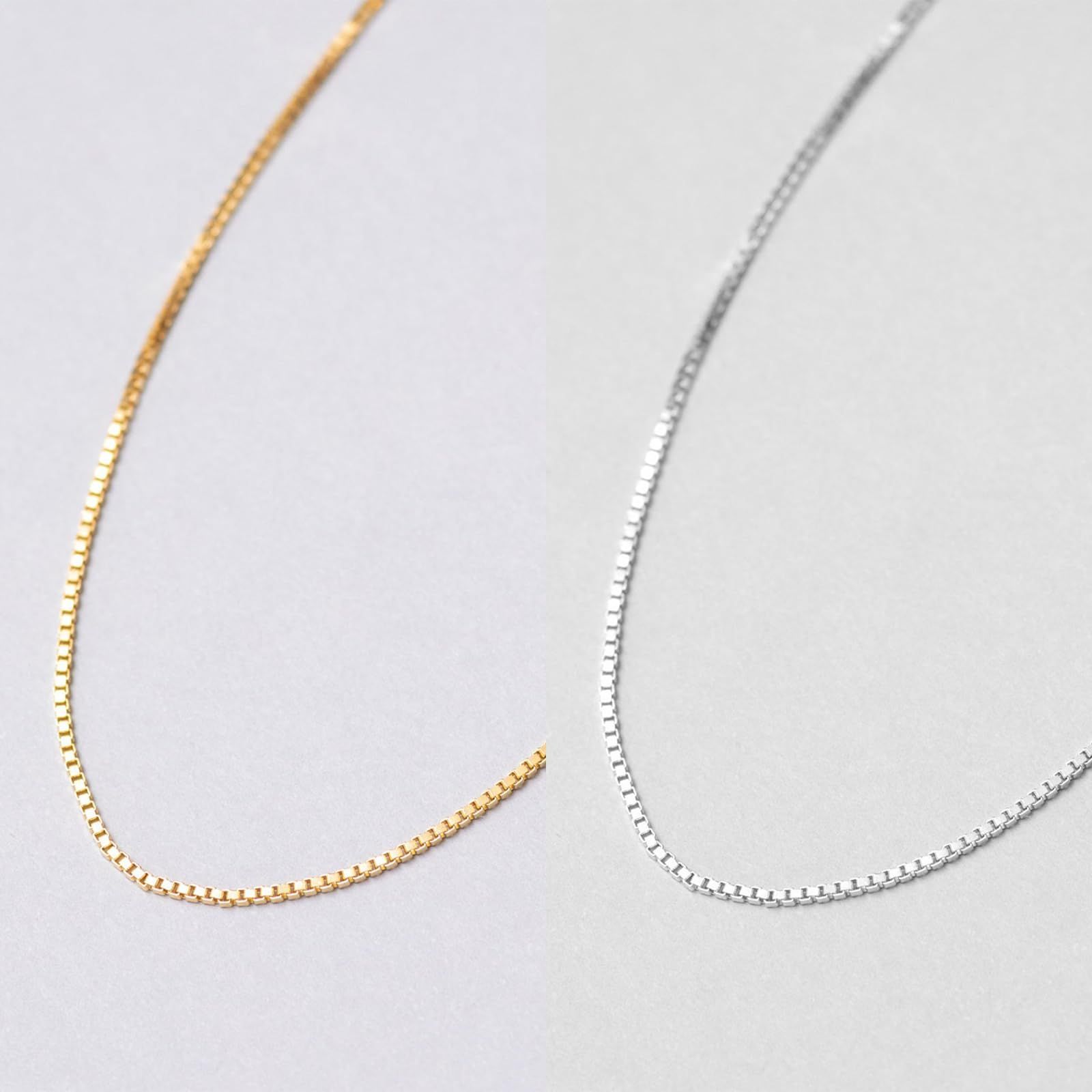 【ベネチアンチェーン】光の反射でキラキラと輝く細目チェーンが大人可愛い印象を与えてくれる、毎日つけて飽きないアイテム。重ね付けしてもオシャレに首元を飾ります。