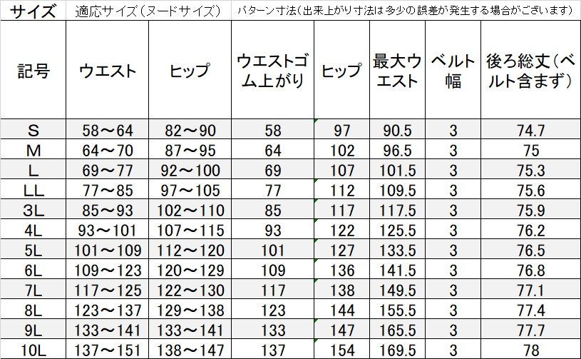 丈のオーダー、ウエストゴム上がりは無料で承っております。