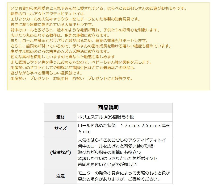 いつも変わらぬ可愛さと人気でみんなに愛されている、はらぺこあおむしさんのお遊びおもちゃです。