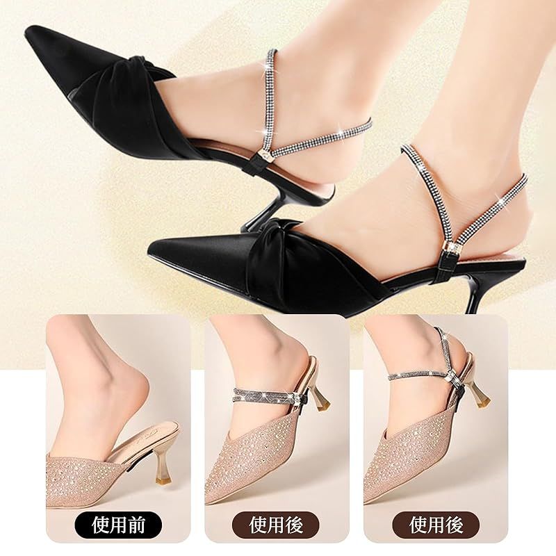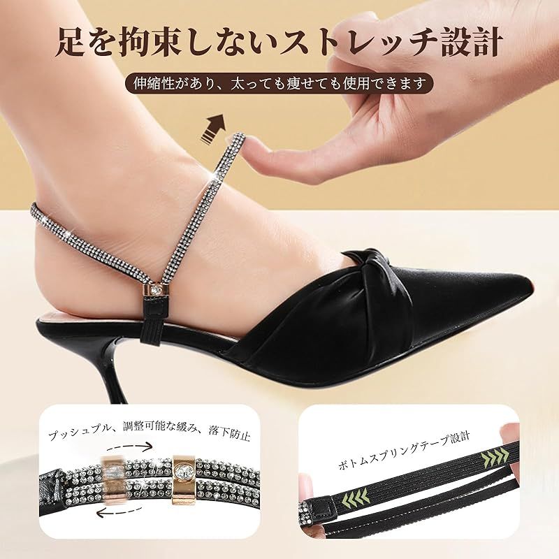 【幅広い用途】シューズストラップは、ほとんどのハイヒール、浅い靴、ダンスシューズ、サンダル、スリッパなどの脱落しやすい靴に適しています。仕事、ダンス、パーティー、結婚式、卒業式、入学式など、すべての重要な機会に適しています。お母さん、友達、同僚などへのプレゼントとしても最適です。