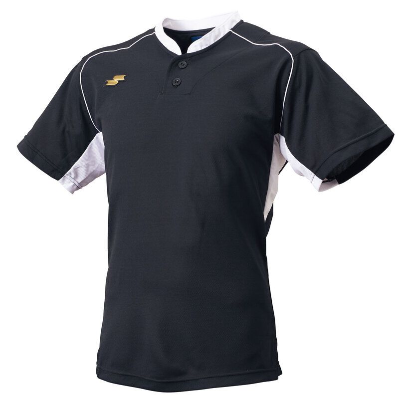SSK(エスエスケイ) 2ボタンベースボールTシャツ 野球 25SS ウェア Tシャツ BT2680、(9010)ブラック×ホワイト