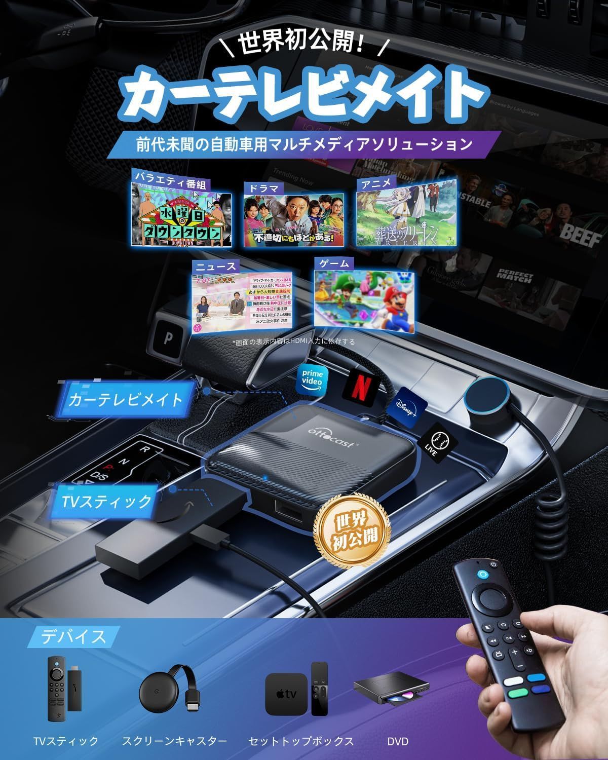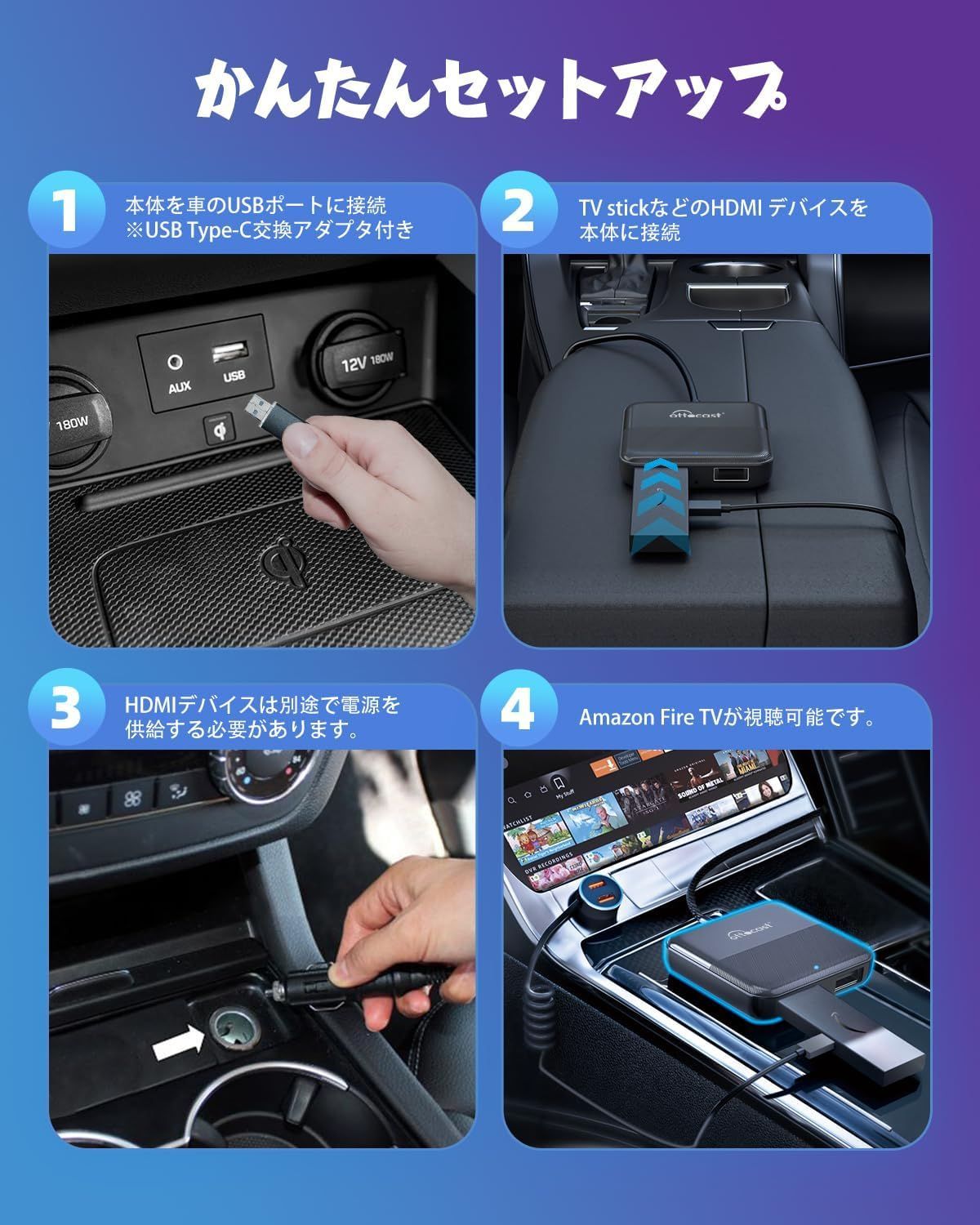 特徴 車にHDMI入力が無くてもTVStickなどの動画を楽しめる