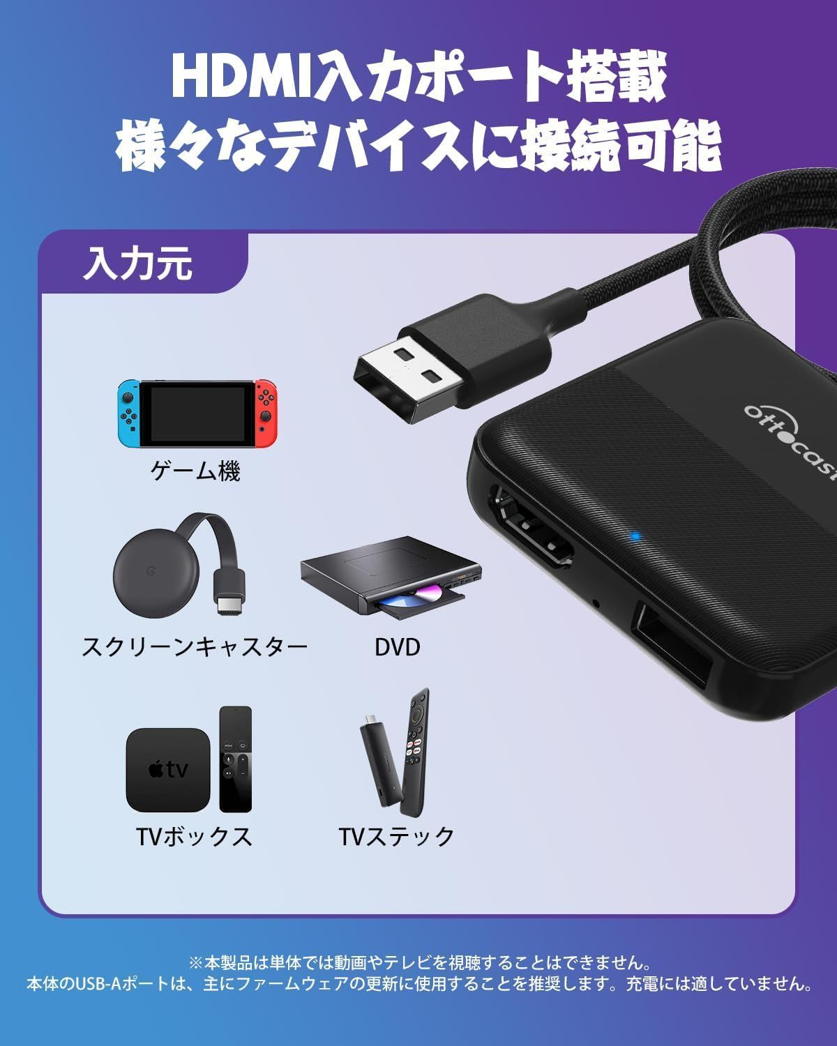 HDMI出力のTV stick/スクリーンキャスター/DVDなど接続可能 USB Type-C交換アダプタ付き 有線CarPlay搭載車両専用 技適取得済み品