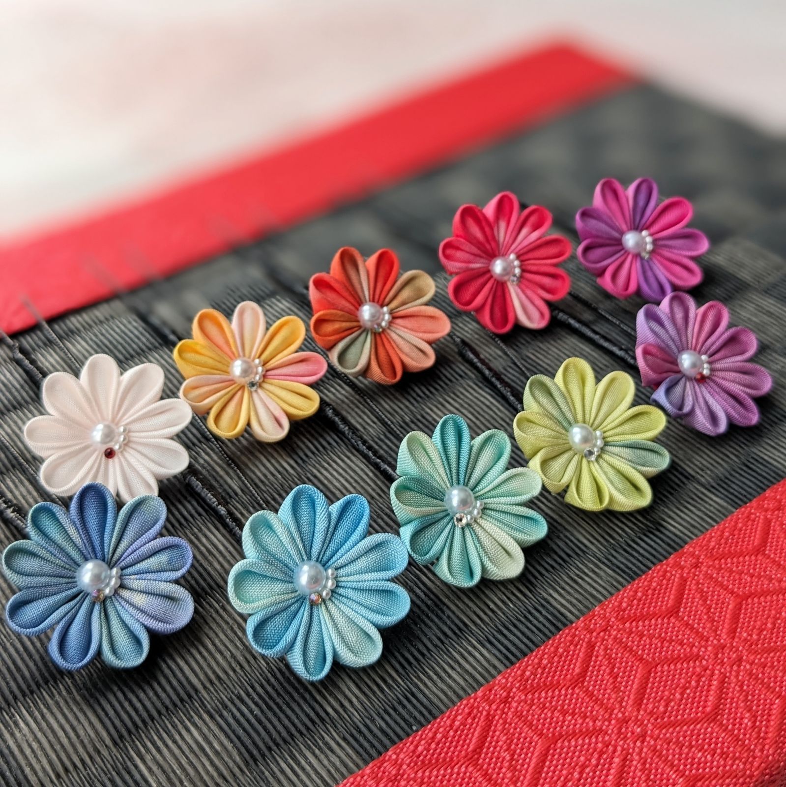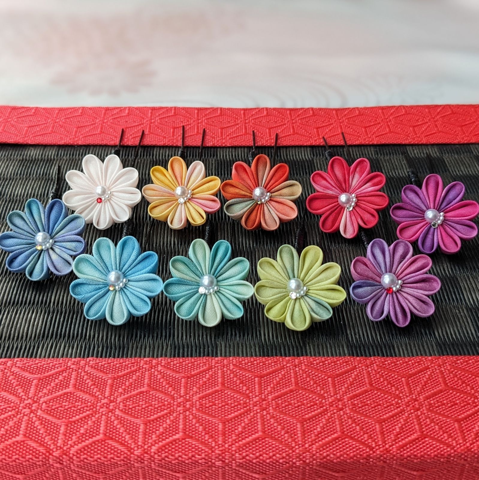 つまみ細工 つまみ細工髪飾り megtsumami 成人式 卒業式 入学式 七五三 お宮参り 桃の節句 パーティ 振袖 着物 浴衣 正絹 シルク 羽二重 伝統工芸 tsumamizaiku kanzashi 前撮り 後撮り handmade japaneseculture traditionalart プレゼント ギフト 普段遣い 夏祭り 卒園式 結婚式 和装 和服 晴れの日 ポニーフック ブローチ コサージュ ピアス イヤリング