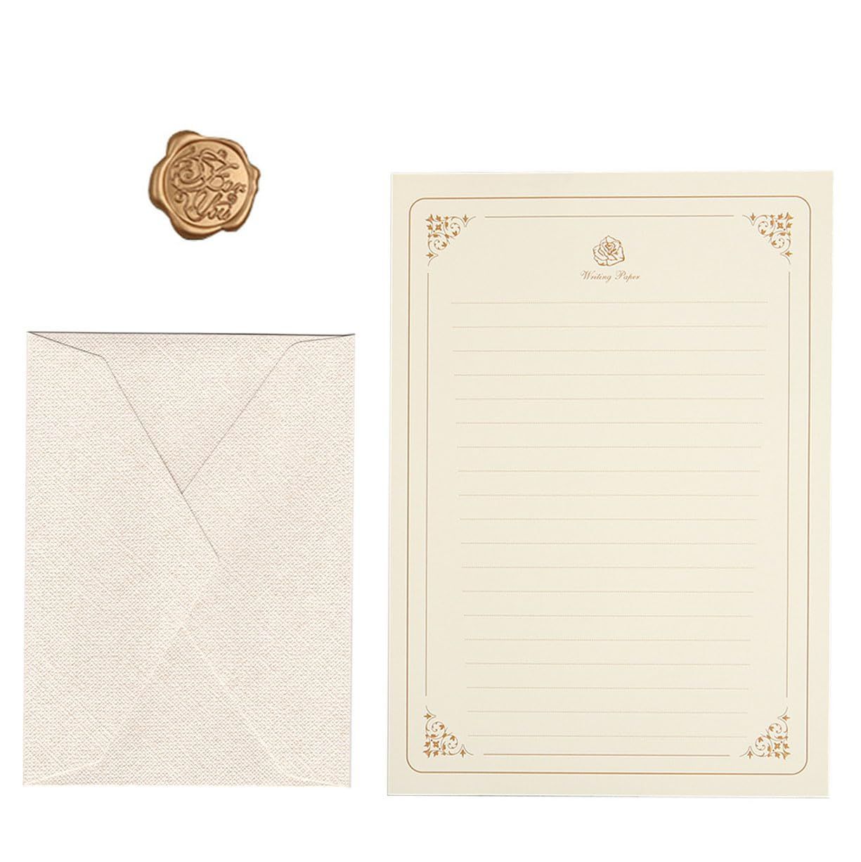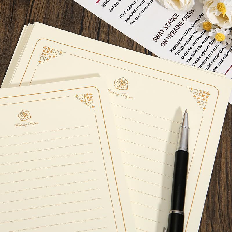 封筒は高級感が溢れた麻布柄の250g紙で作られました。横線入りのローズ柄の便箋で書きやすいです。