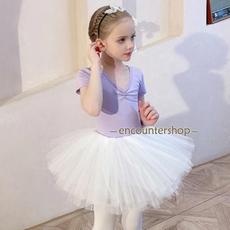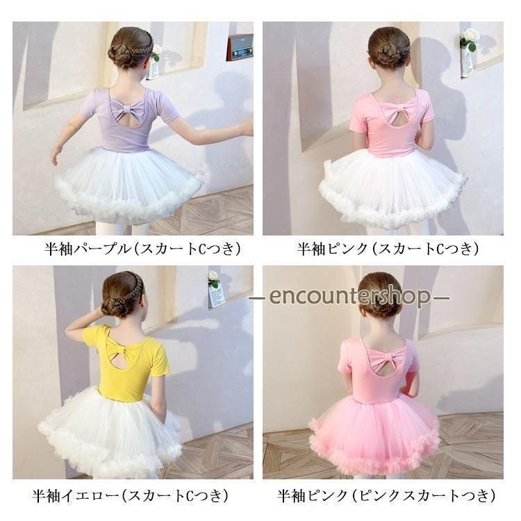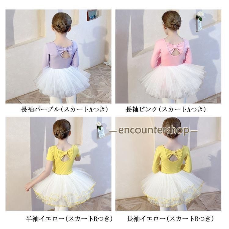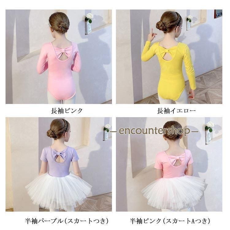 バレエ レオタード キッズ バレエレオタード バレエセット 2点セット 子供 ジュニア 子ども 半袖 長袖 スカートつき 新体操 コットン 綿 ス